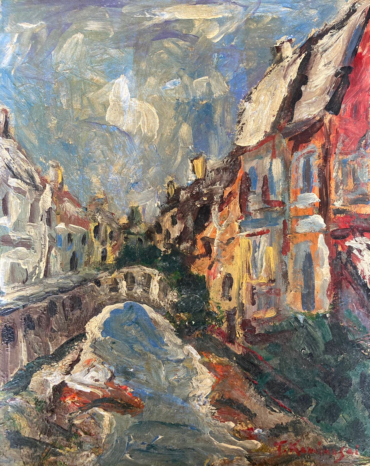 Tadashi Kaminagai - Inverno na Europa - 65 x 54 cm - Óleo sobre tela - Assinatura canto inferior direito