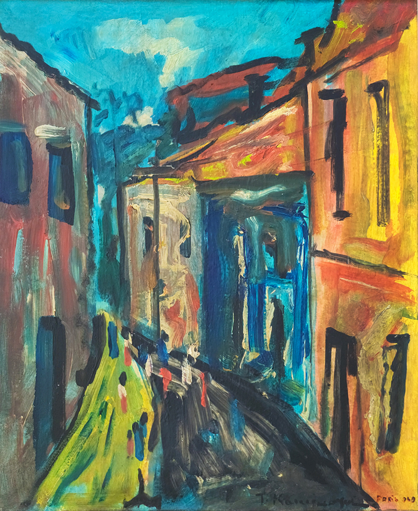 TADASHI KAMINAGAI, Paisagem com Figuras, OST, ACIE, 53 x 64cm (m.i). Datado 1966