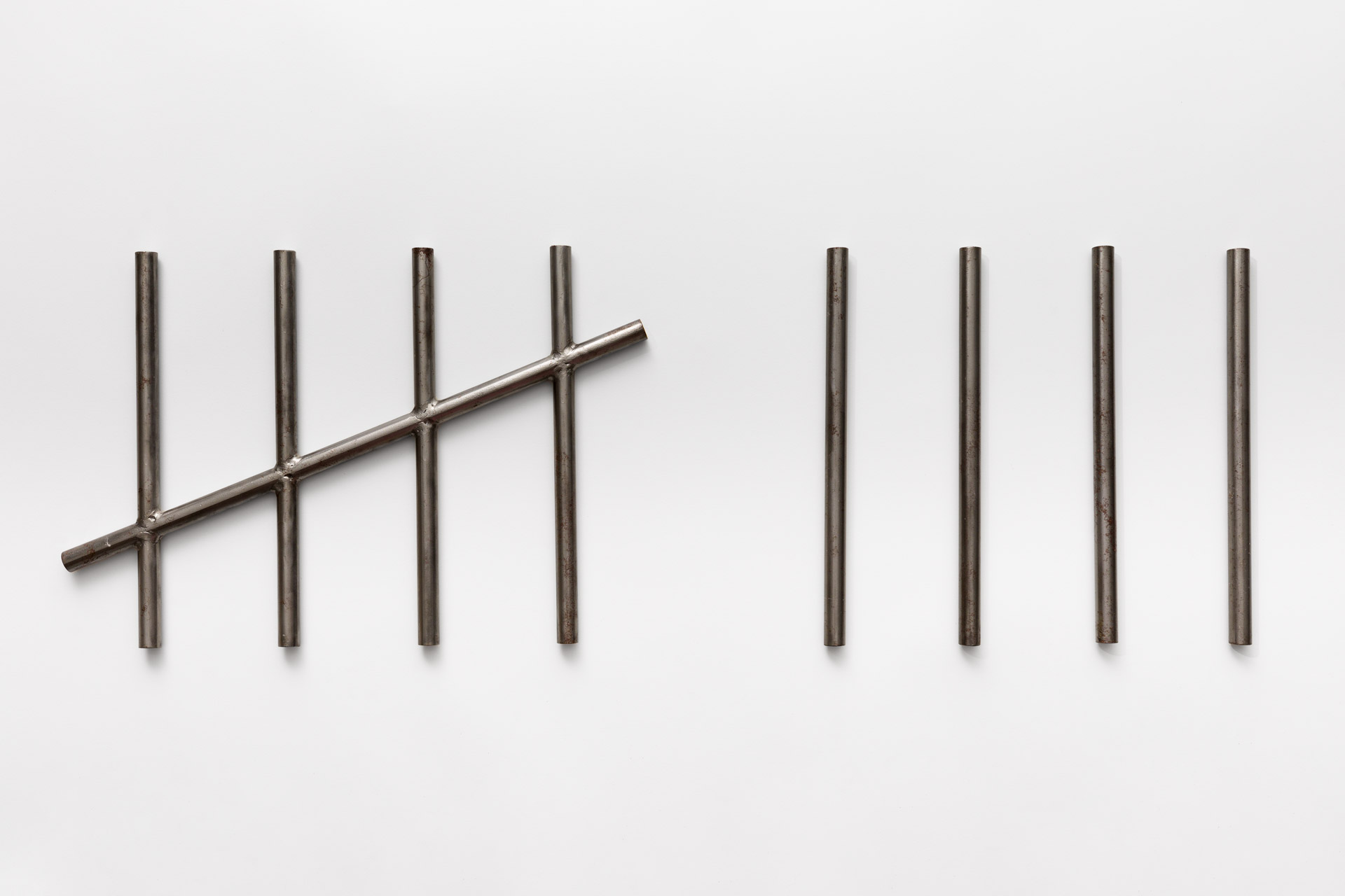 Manipular o que é obtido nessa investigação, seja ao desagregar e reorganizar elementos industriais e naturais, transgredir usos, quebrar normas, criar novas regras, assumir riscos entre o caos e a ordem ou inventar procedimentos e jogos auto-propostos é o que, por fim, determina a forma que suas obras tomam.