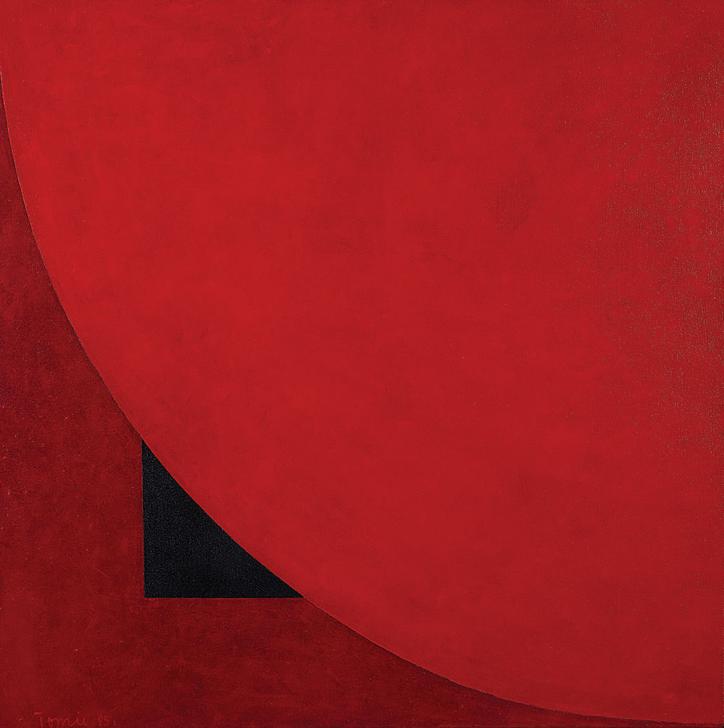 Após breve passagem pela pintura figurativa, Tomie Ohtake define-se pelo abstracionismo. No início da década de 1960, emprega uma gama cromática reduzida, com predominância de duas ou três cores. Leva o olhar do espectador a percorrer superfícies em telas que muitas vezes lembram nebulosas. Utiliza, em algumas obras, pinceladas "rarefeitas" e tintas muito diluídas, explorando as transparências. Posteriormente, surgem em seus quadros formas coloridas, grandes retângulos, que parecem flutuar no espaço. Ao longo da década de 1960 emprega mais freqüentemente tons contrastantes. Revela afinidade com a obra do pintor Mark Rothko (1903-1970), na pulsação obtida em suas telas pelo uso da cor e nos refinados jogos de equilíbrio. A artista explora a expressividade da matéria pictórica, mais densa, em texturas rugosas, ou mais diluída e transparente.