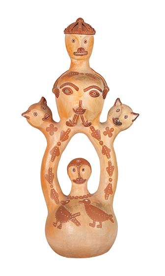 Em plena zonal rural do município de Caraí residiu o maior ceramista do Vale do Jequitinhonha: o mestre Ulisses Pereira Chaves. Seu imaginário único, original, coloca-o, na realidade, entre os mais importantes escultores ativos no país do século XX. O paisagista Roberto Burle Marx – que entedia a circularidade existente entre as culturas altas e as do povo comum, e autor de uma obra coletiva de alcance universal – construiu no seu sítio de Barra de Guaratiba, no Rio de Janeiro, um pavilhão praticamente destinado à exposição das obras de Ulisses, que foi adquirindo ao longo de anos. Grave e digno, lutando para sobreviver numa região endêmica e levando uma vida a um passo da pobreza mais absoluta, Ulisses dizia “ser gente da natureza, sempre junto com o sol, a lua e as estrelas”. Quando era menino, trabalhava na lavoura, como fez sempre e criava gado. Com razão, não gostava de ser fotografado ou filmado, “pois isso tira a energia da pessoa”. Ulisses foi filho da paneleira Domingas Pereira Santos, por sua vez filha, neta e bisneta de oleiras. Por essas informações podemos aferir a antiguidade desse ofício quase tricentenário em Caraí. Também foi só a partir da geração de Ulisses que os homens adultos passaram a exercer a arte do barro, pois nas gerações anteriores sta era ocupação exclusivamente feminina. Ele raramente saía de seu sítio no meio do mato, onde morava com a mulher e criou seus oito filhos. Sua mulher, Maria José, e a irmã, Ana, que mora ao lado, são igualmente ceramistas e nascidas ali. Alguns filhos migraram para São Paulo, outros adoeceram e com ele ficaram Margarida, excelente ceramista, e o filho Zé Maria. Ulisses constituiu em torno dele uma oficina familiar, cujos membros levam a marca da sua invenção, mas com modos diferenciados de autoria. Figuras zoomorfas, antropomorfas, entes sobrenaturais de um único pé, como o Urômelo da tradição greco-romana, outros com inúmeras cabeças, minotauros, lobisomens, o imaginário fantástico de Ulisses veio se acrescendo de novos personagens com o tempo. Ao compararmos os seus trabalhos das décadas de 1970, 1980 e 1990, fica também nítida a busca de um crescente apuro formal, a consciência da pesquisa da matéria em função do resultado plástico. As últimas criações de Ulisses, iniciadas nos anos 1990, são as extraordinárias cabeças resolvidas com incrível economia de elementos, o nariz unindo-se à lisura de uma cabeleira que poderia ser p capacete e um guerreiro homérico, a boca entreaberta proferindo as palavras secretas do pacto feito entre o homem e a natureza. Expressionista, surrealista, ou participante de uma experiência outra, que convive com o sobrenatural com a maior naturalidade, considerando-o mais verdadeiro do que os fatos perceptíveis por todos os nós no seu dia-a-dia? Em duas visitas (2001/2) feitas ao seu pequeno sítio no Córrego de Santo Antônio, Ulisses deixou clara a sua consciência da natureza aurática da obra de arte, que declarou textualmente ser invisível porque em permanente mutação, e que sabia ser insubstituível e incomunicável a não ser p0ela sua própria presença física. O filósofo Eduardo Subirats refere-se a ele no ensaio “O último artista” (2004). Os trabalhos de Ulisses compuseram todo um módulo da mostra “Brésil, Arts Populaires” (Grand Palais, Paris, 1987) levada para o Museu de Arte de Brasília no ano seguinte e depois para a exposição permanente do Centro Cultural de São Francisco, em João Pessoa, Paraíba. Sua criação está representada no acervo do Museu Edison Carneiro (RJ) no Centro Nacional de Folclore e Cultura Popular do Iphan, bem como no Museu Casa do Pontal, que expõe a coleção Jacques van de Beuque.