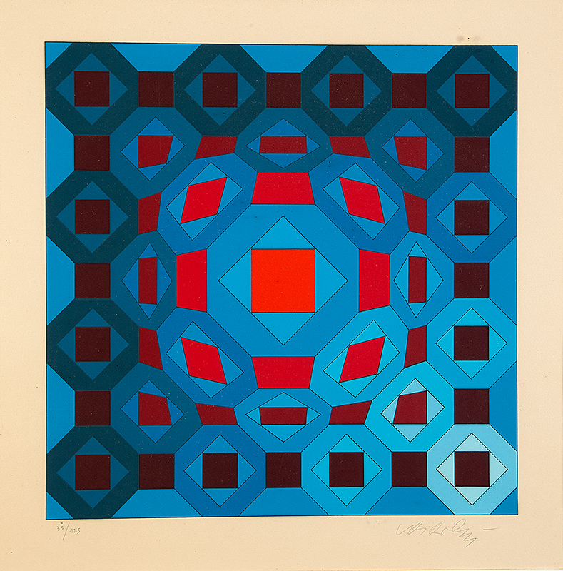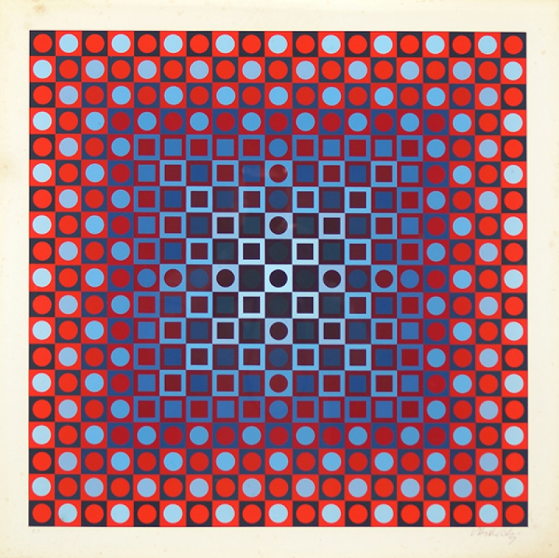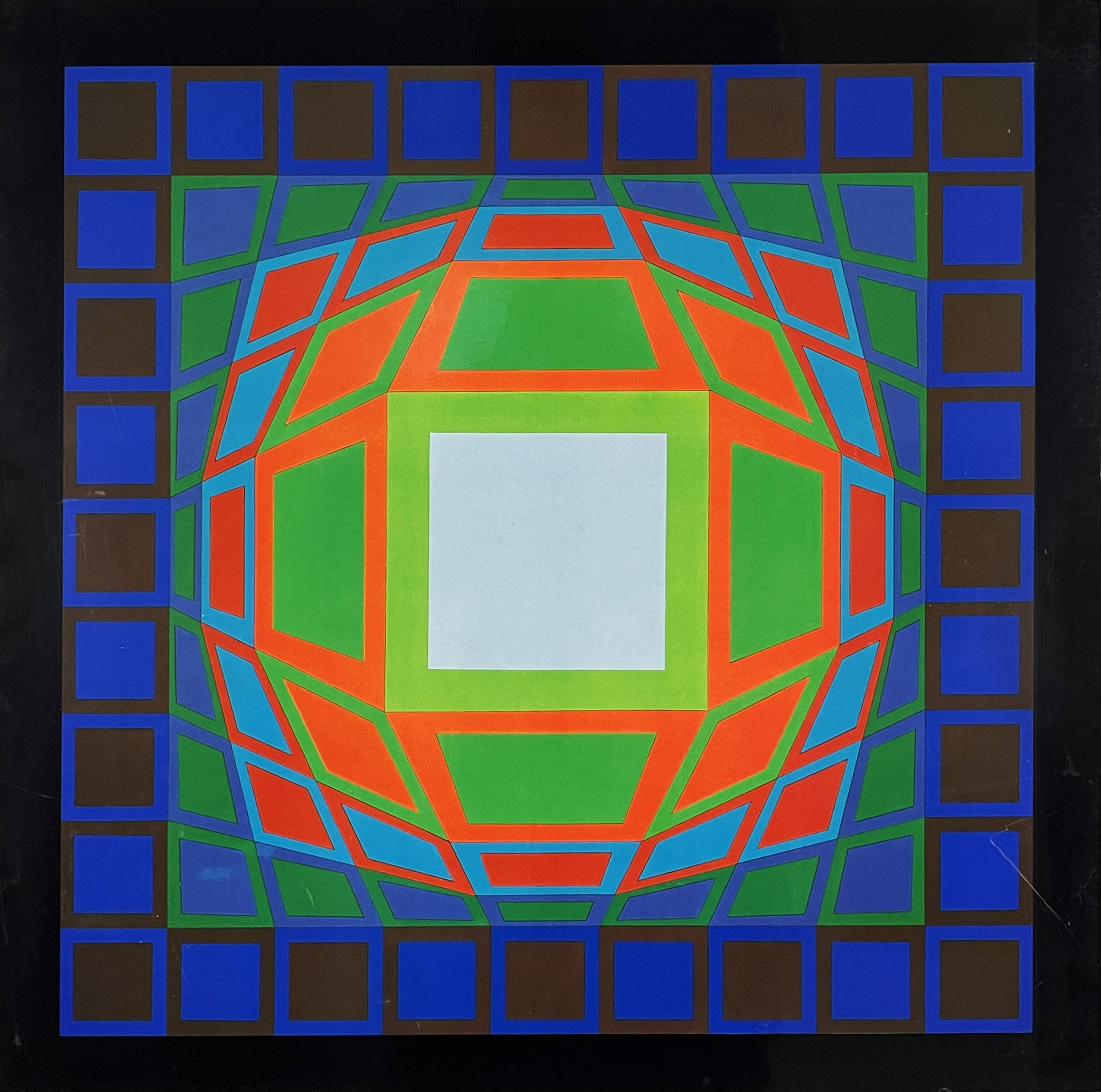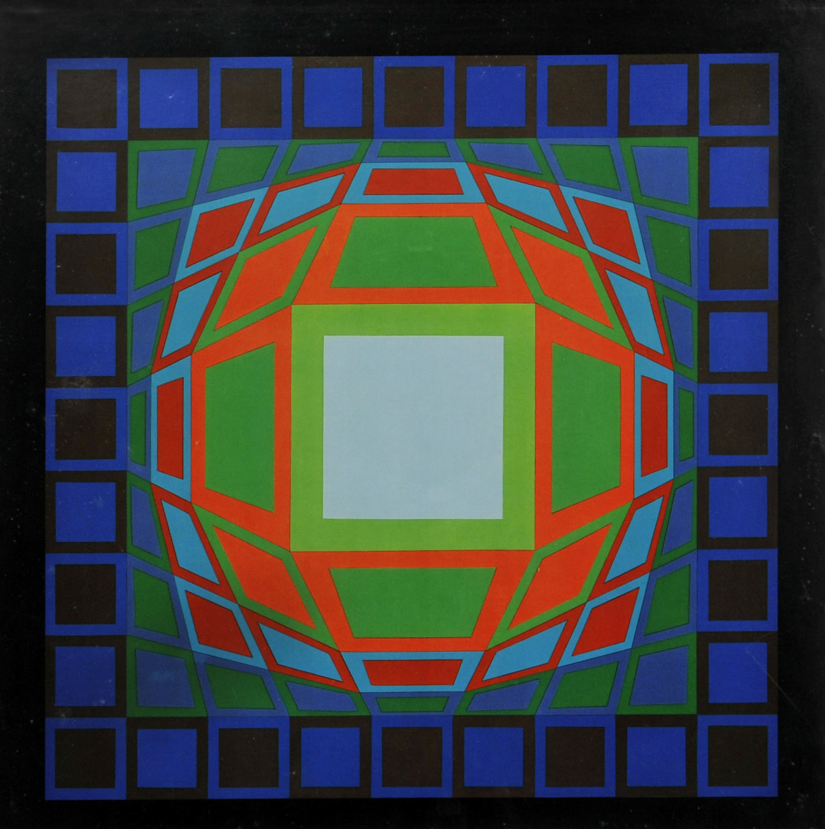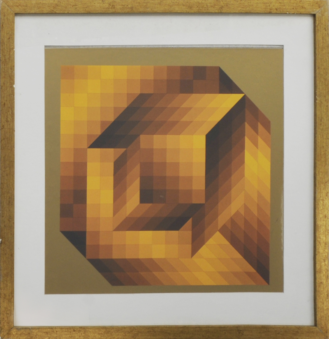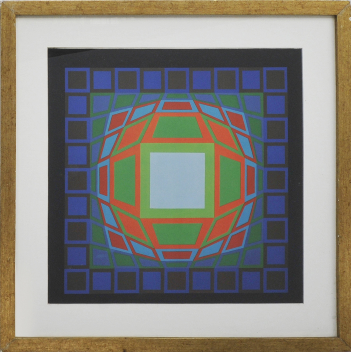 Victor Vasarely,- Sem título - 193-325. Serigrafia, 50x50 cm, sem data, A.C.I.D. a lápis. Com moldura