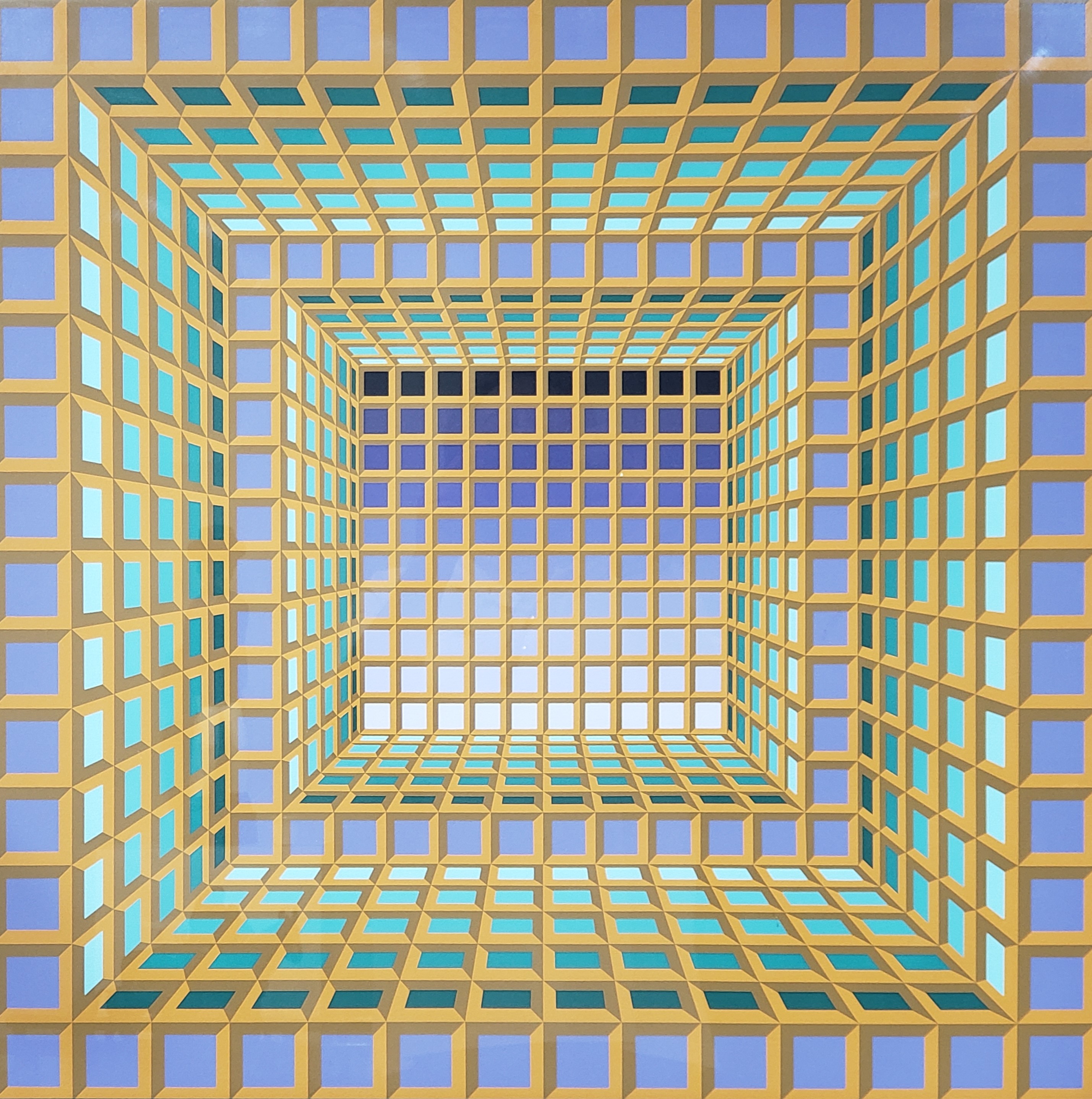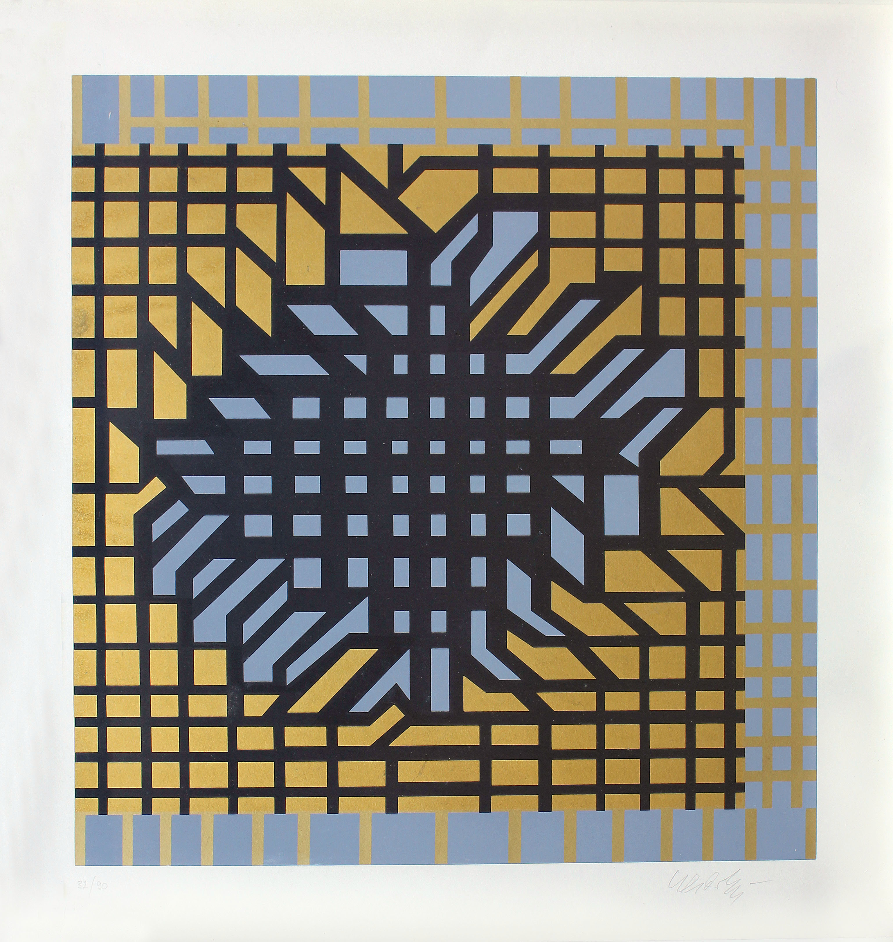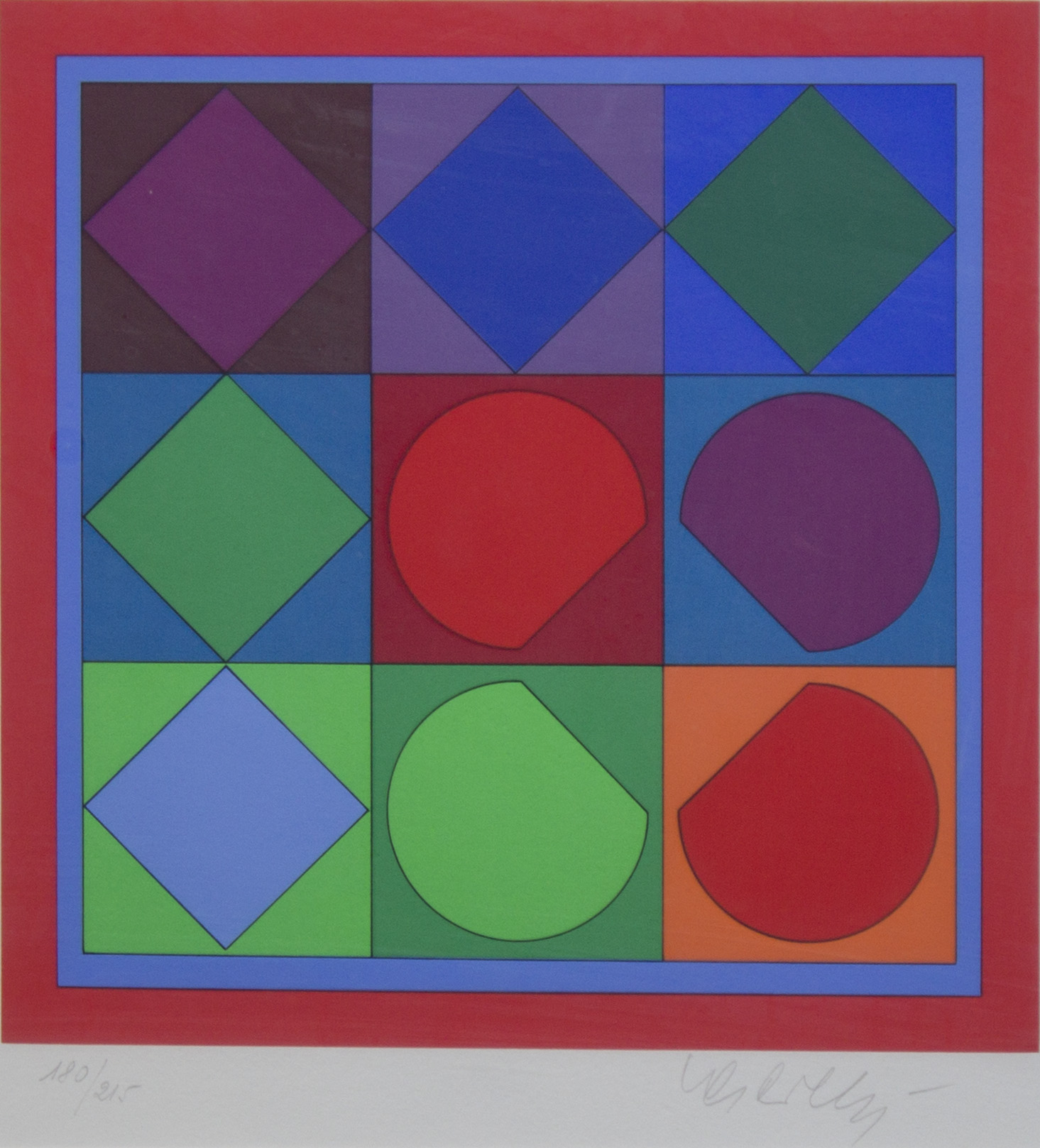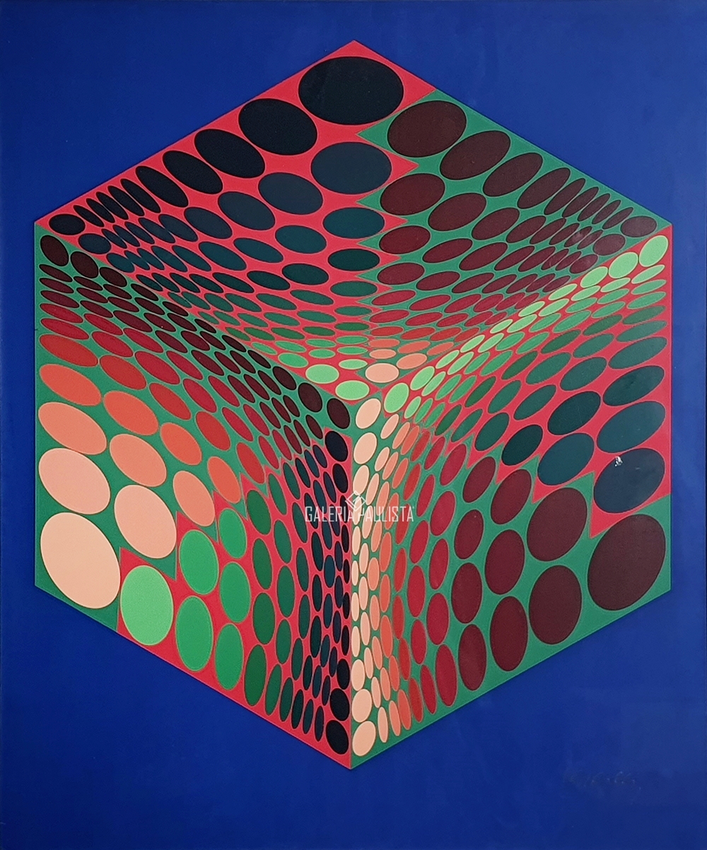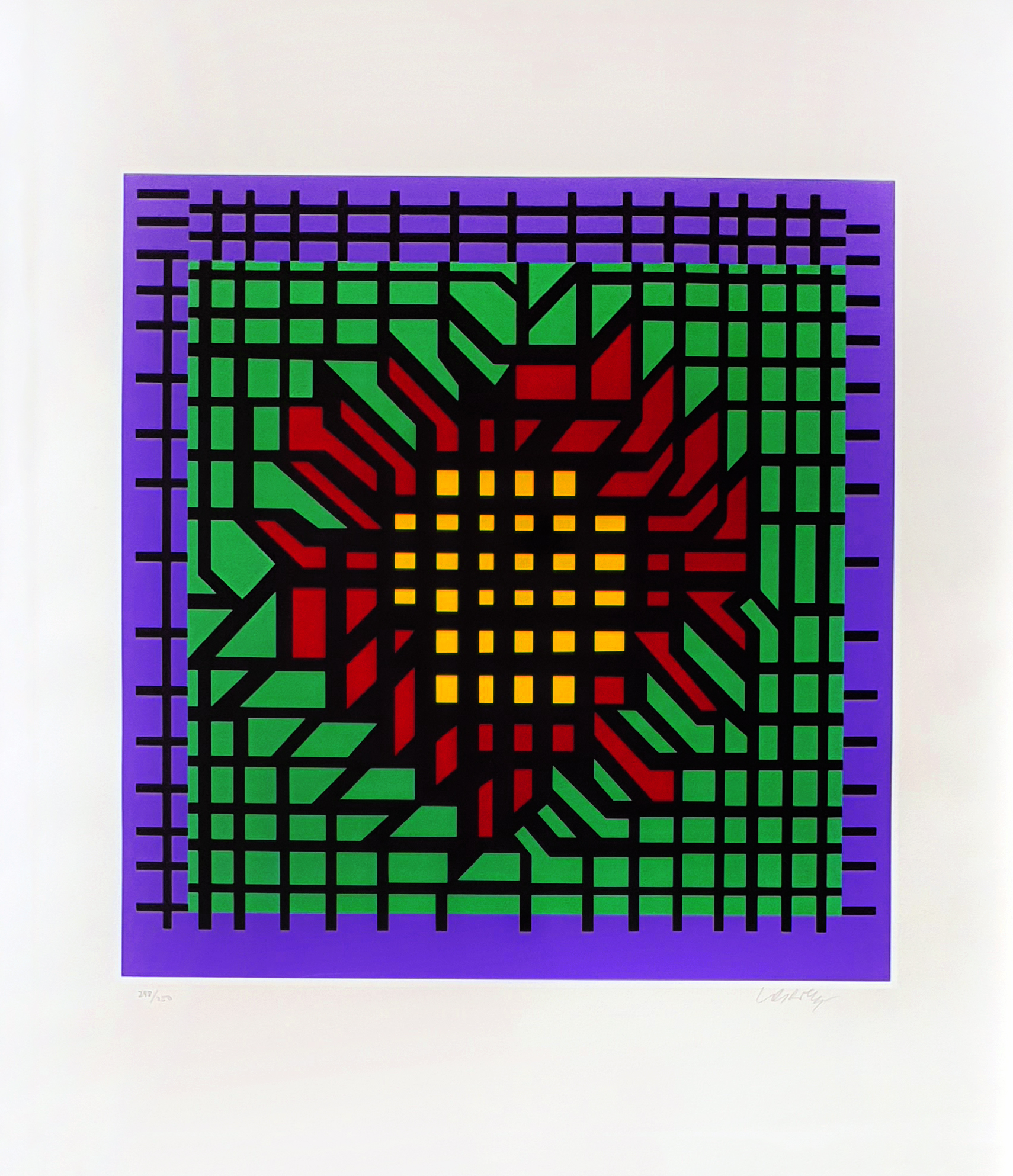 Victor Vasarely,- Sem título - 193-325. Serigrafia, 50x50 cm, sem data, A.C.I.D. a lápis. Com moldura