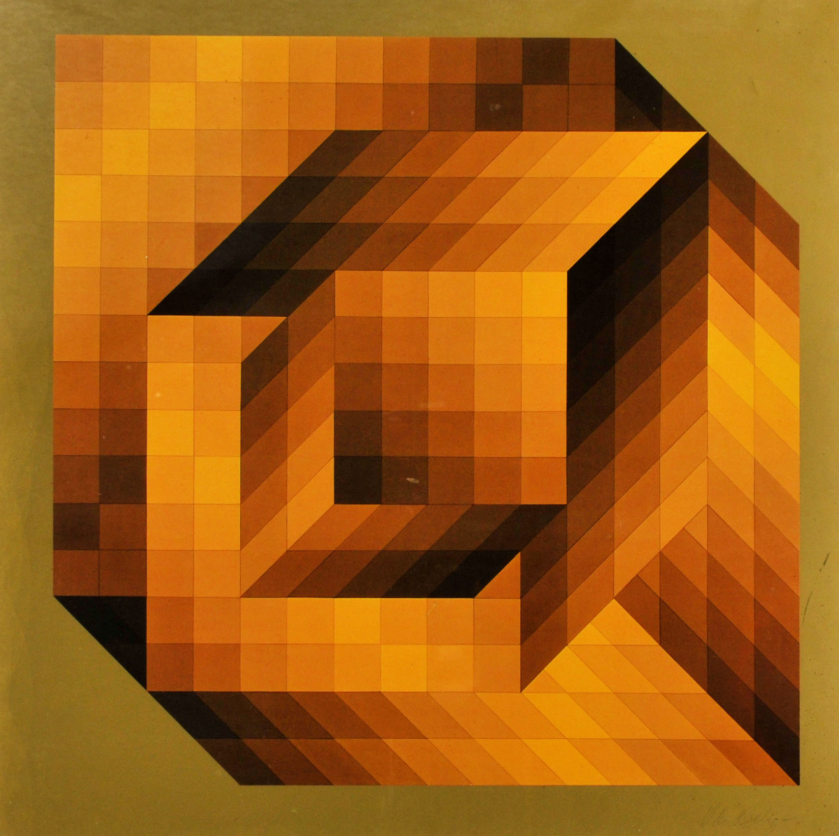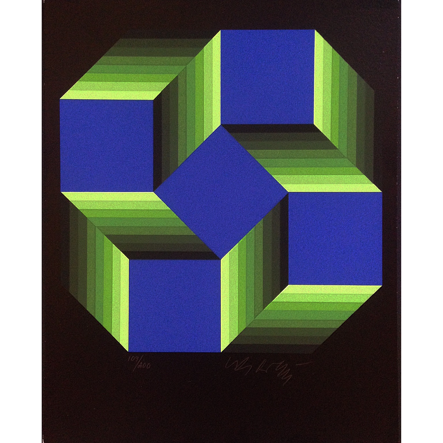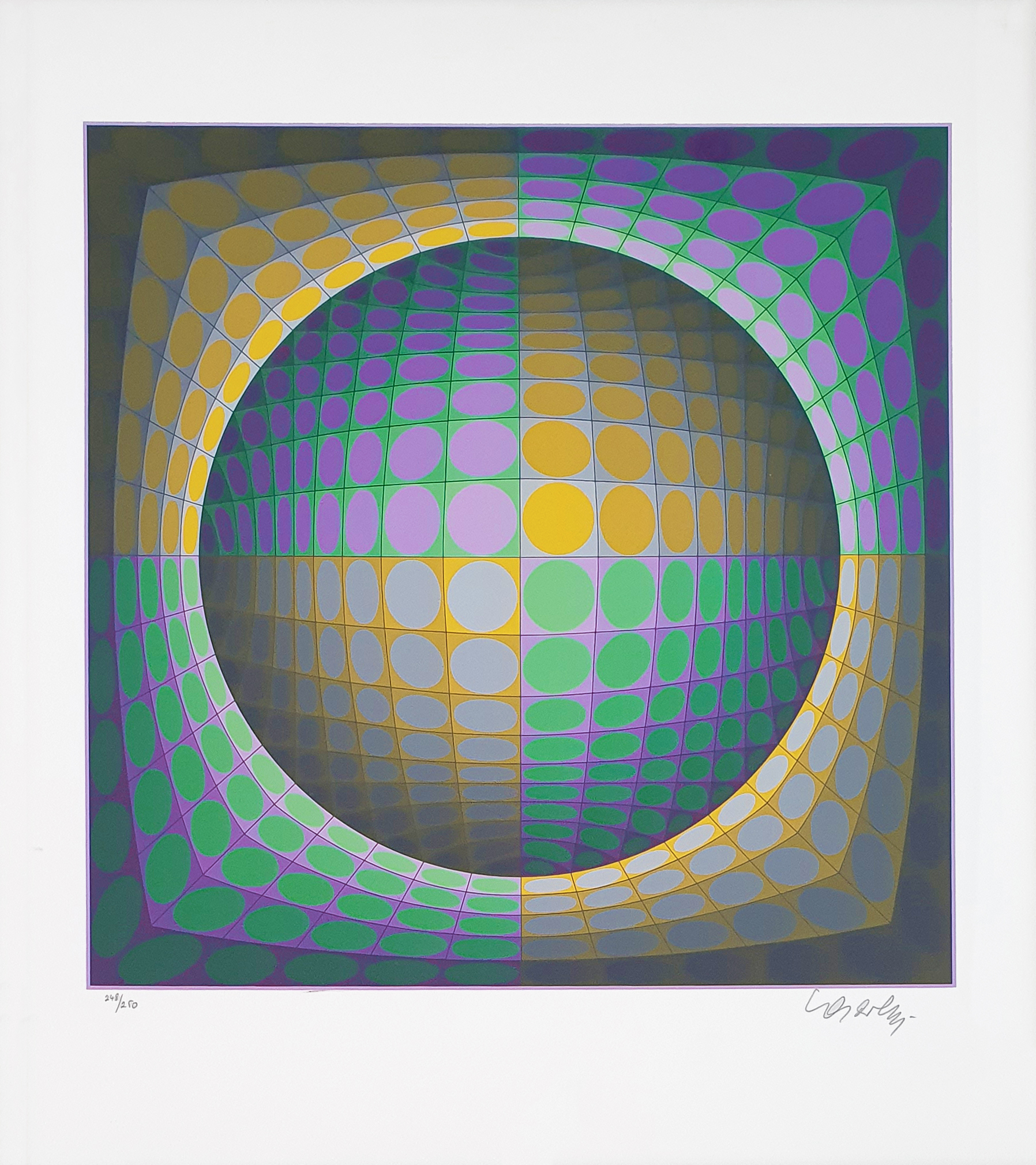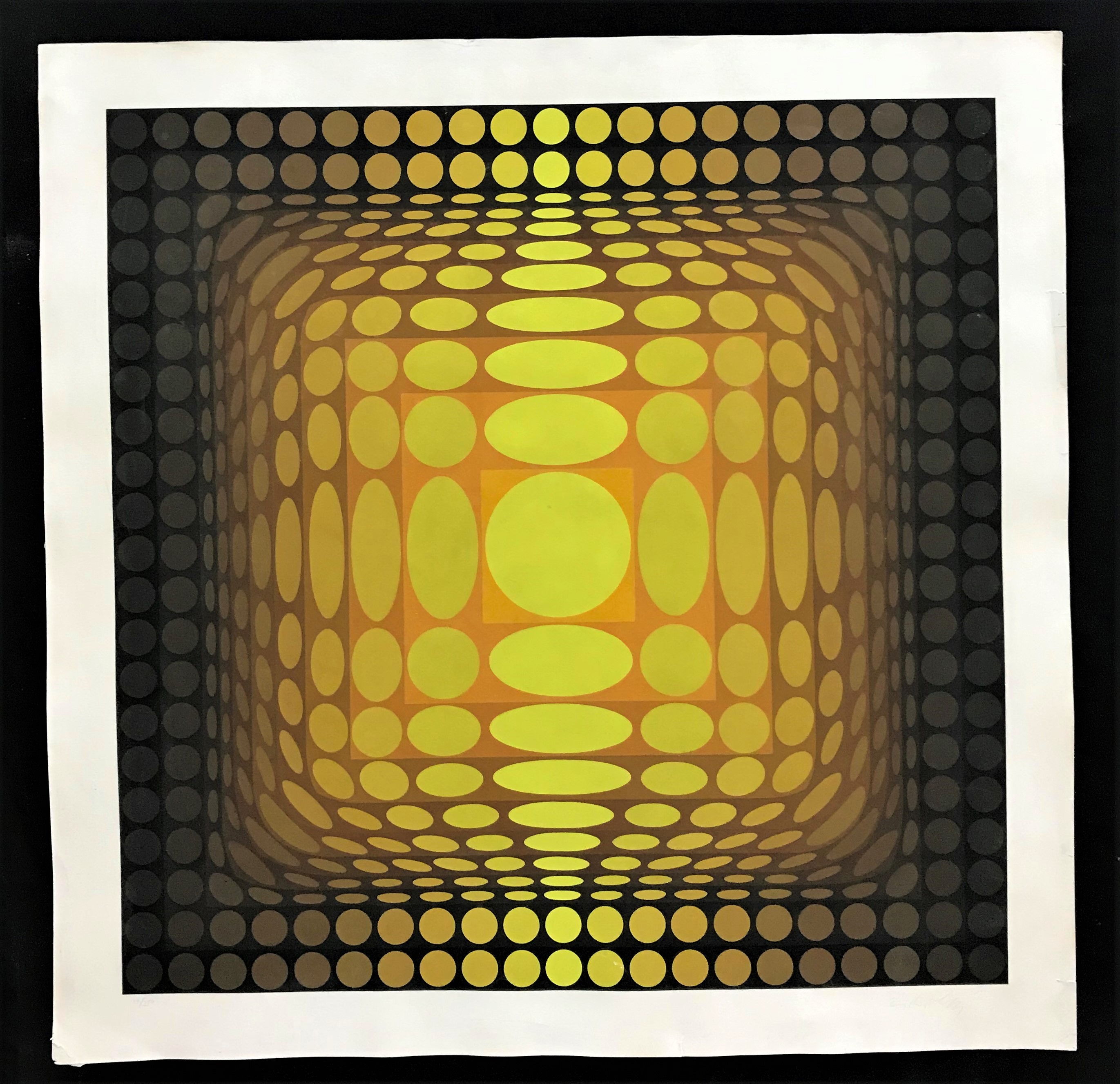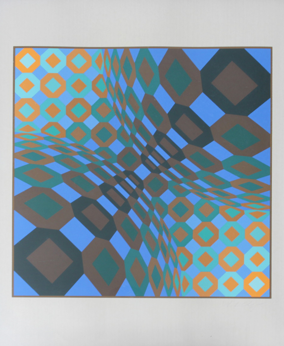 Victor Vasarely,- Sem título - 193-325. Serigrafia, 50x50 cm, sem data, A.C.I.D. a lápis. Com moldura