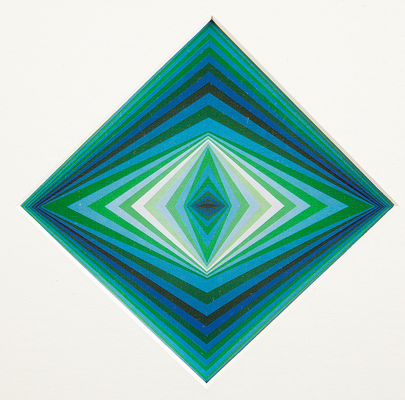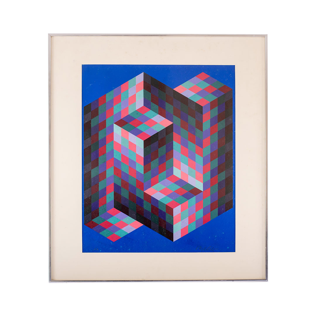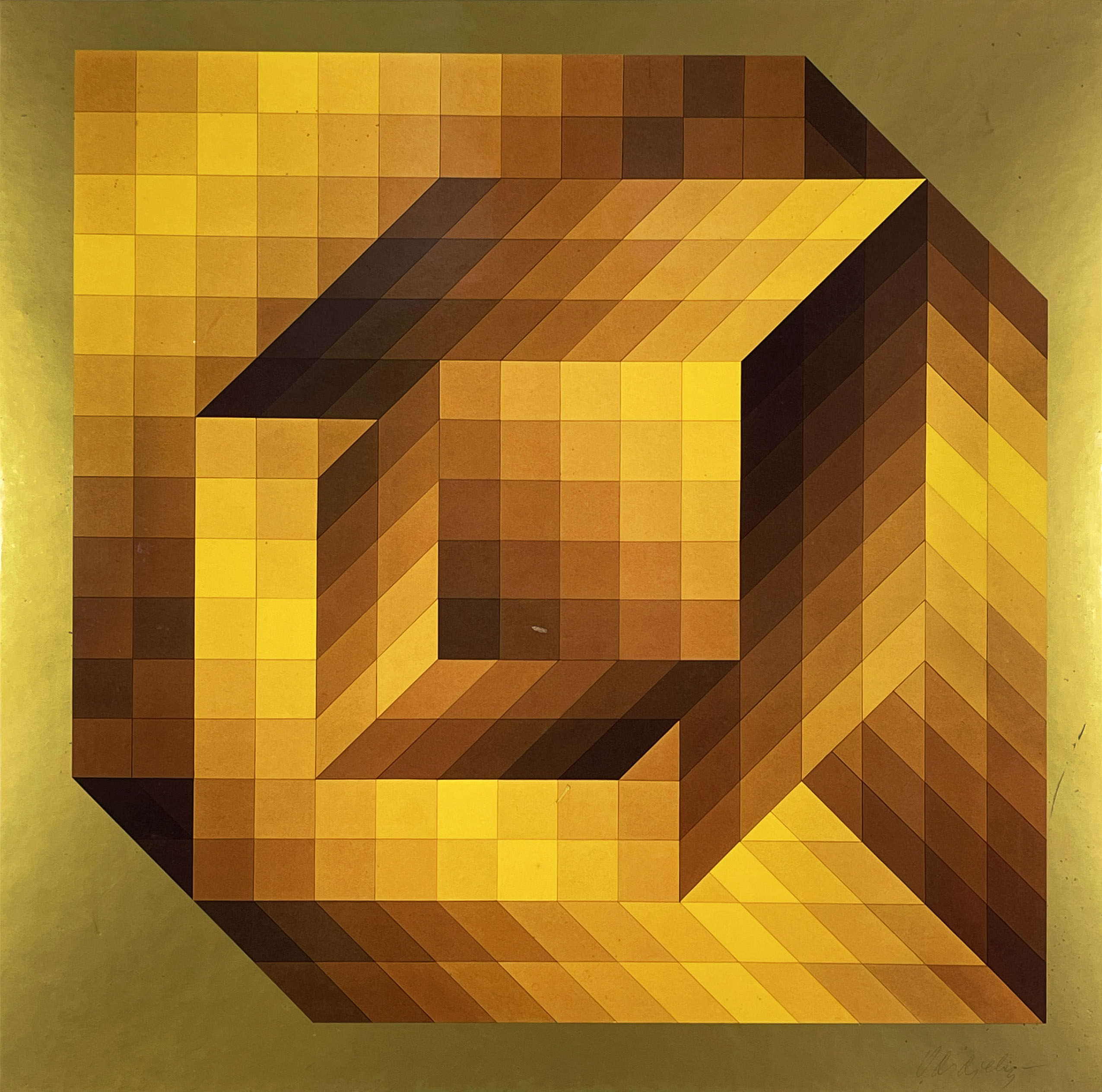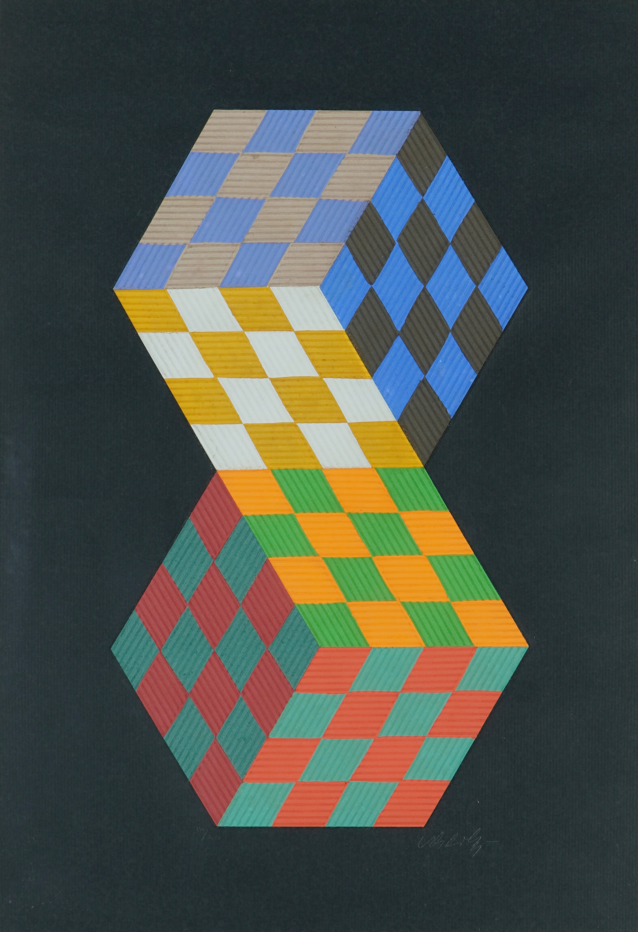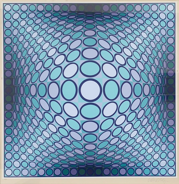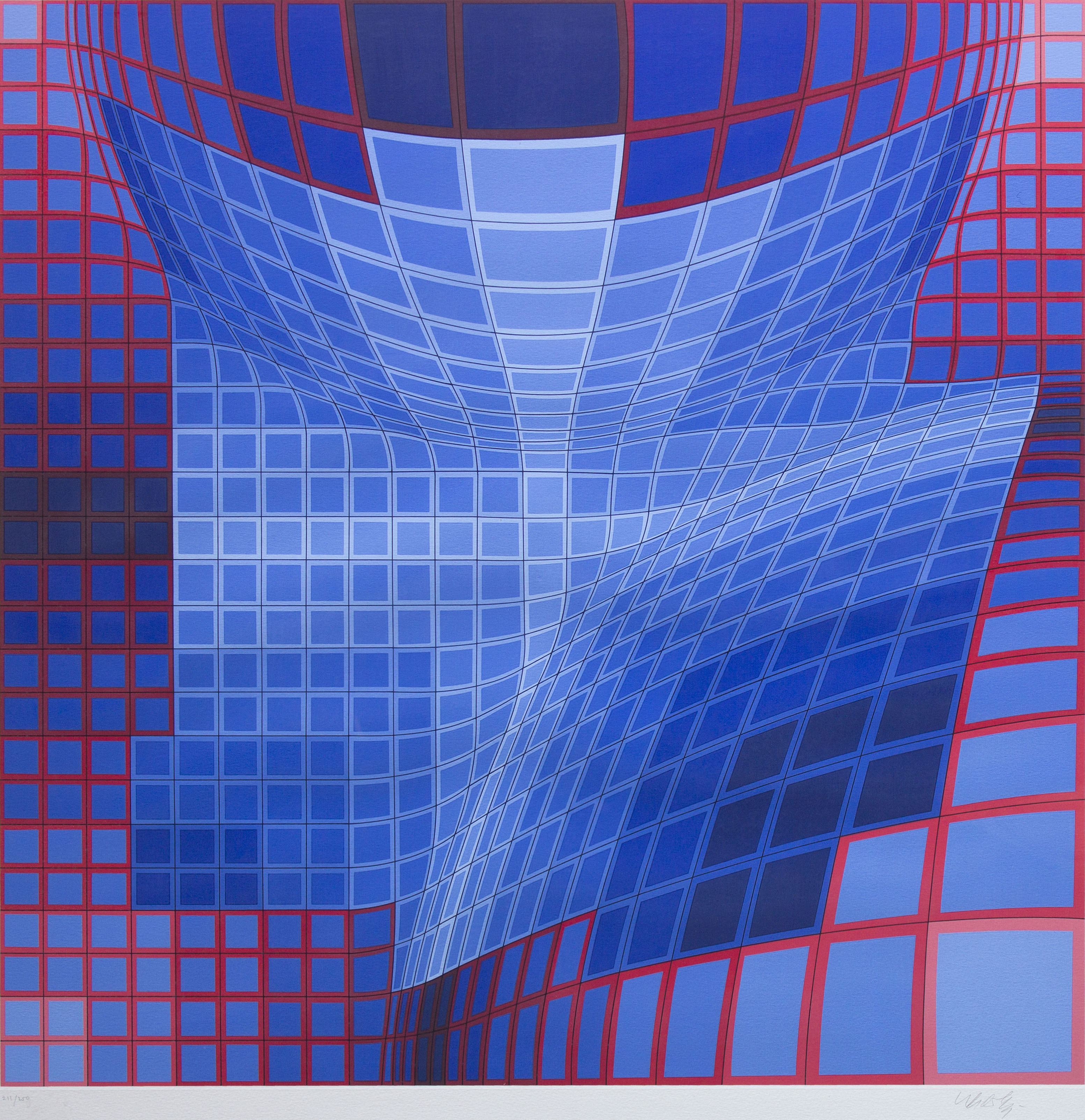Victor Vasarely,- Sem título - 193-325. Serigrafia, 50x50 cm, sem data, A.C.I.D. a lápis. Com moldura