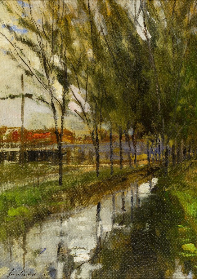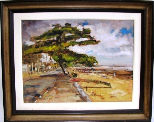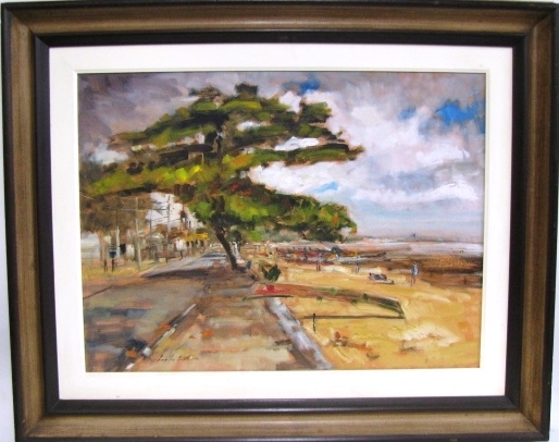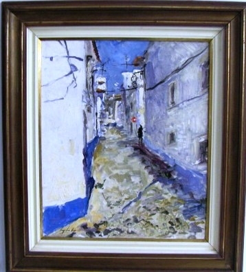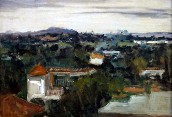 VIRGILIO DIAS "TELHADOS" ASSINADO E DATADO 2001. ÓLEO SOBRE MADEIRA. MEDIDAS: 40 X 26 CM S MOLDURA / 68 X 55 CM C MOLDURA