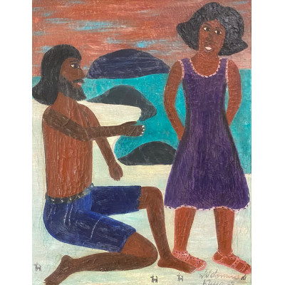 Waldomiro de Deus - Casal - 50 x 40 cm - Óleo Sobre Tela - Assinado no Canto Inferior Direito e Datado 1977