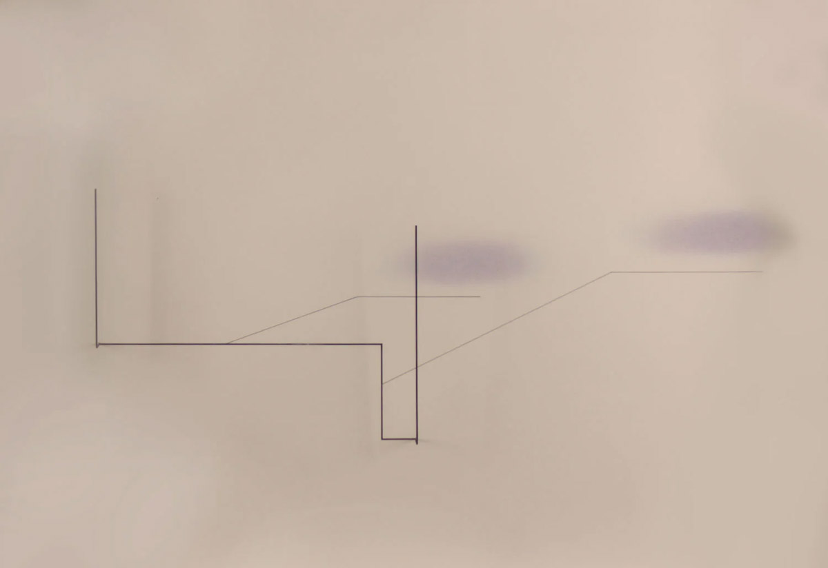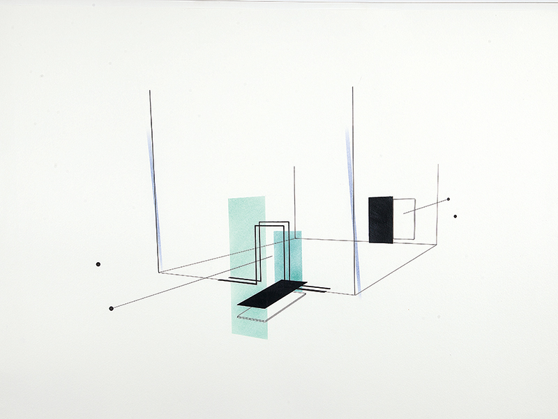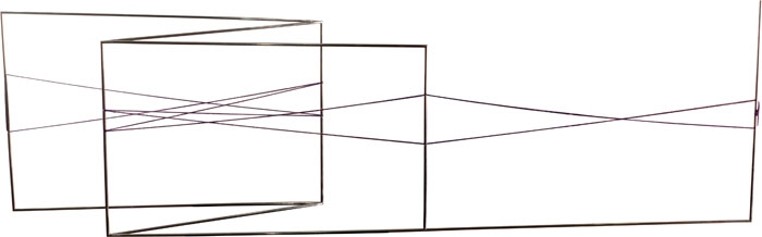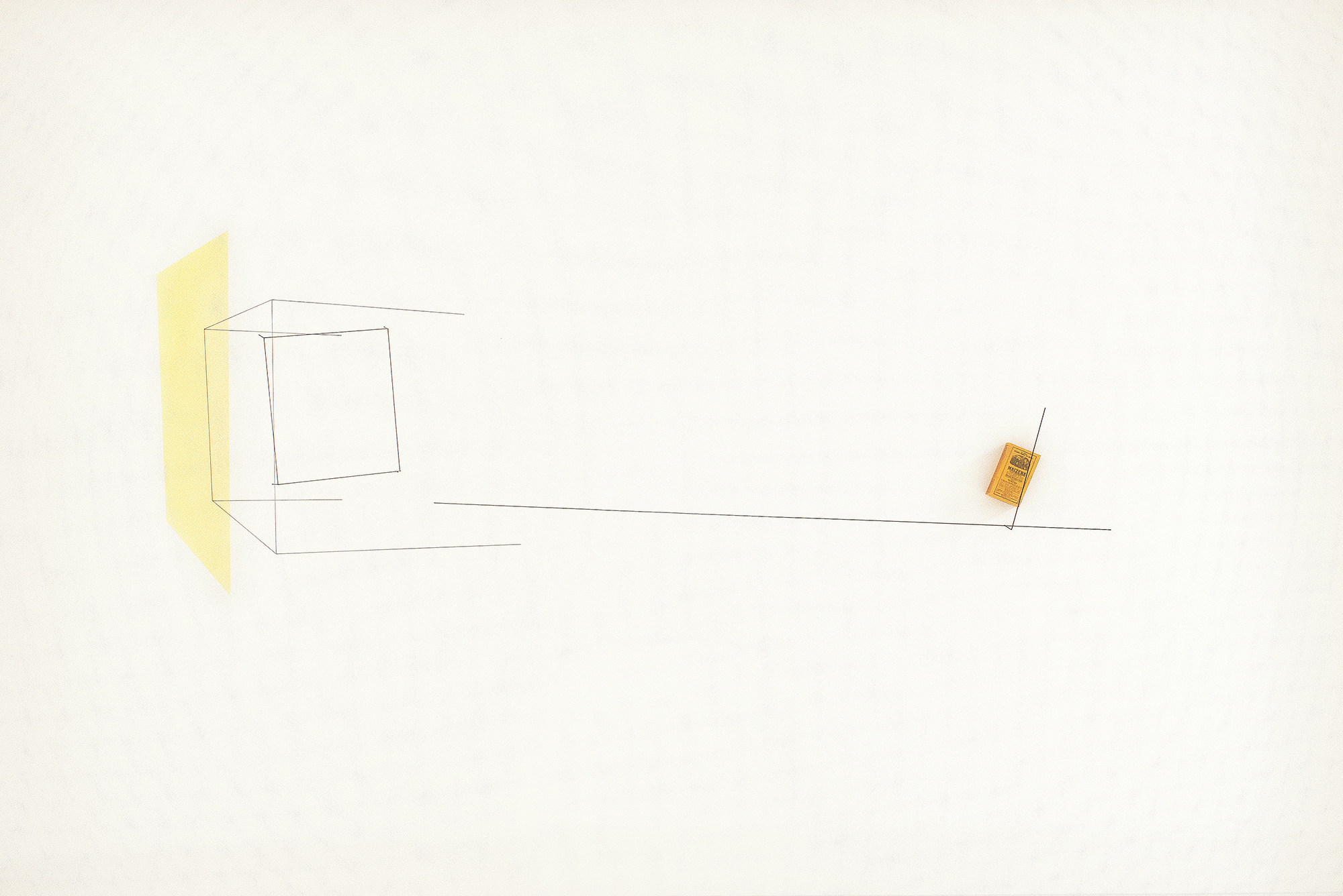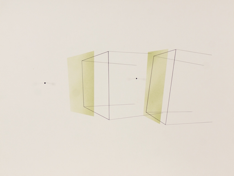 Waltércio Caldas - Desenho - 2010 - Caneta esferográfica, nanquim e lápis de cor, fio de algodão e alfinetes sobre papel - 76 x 120 cm.