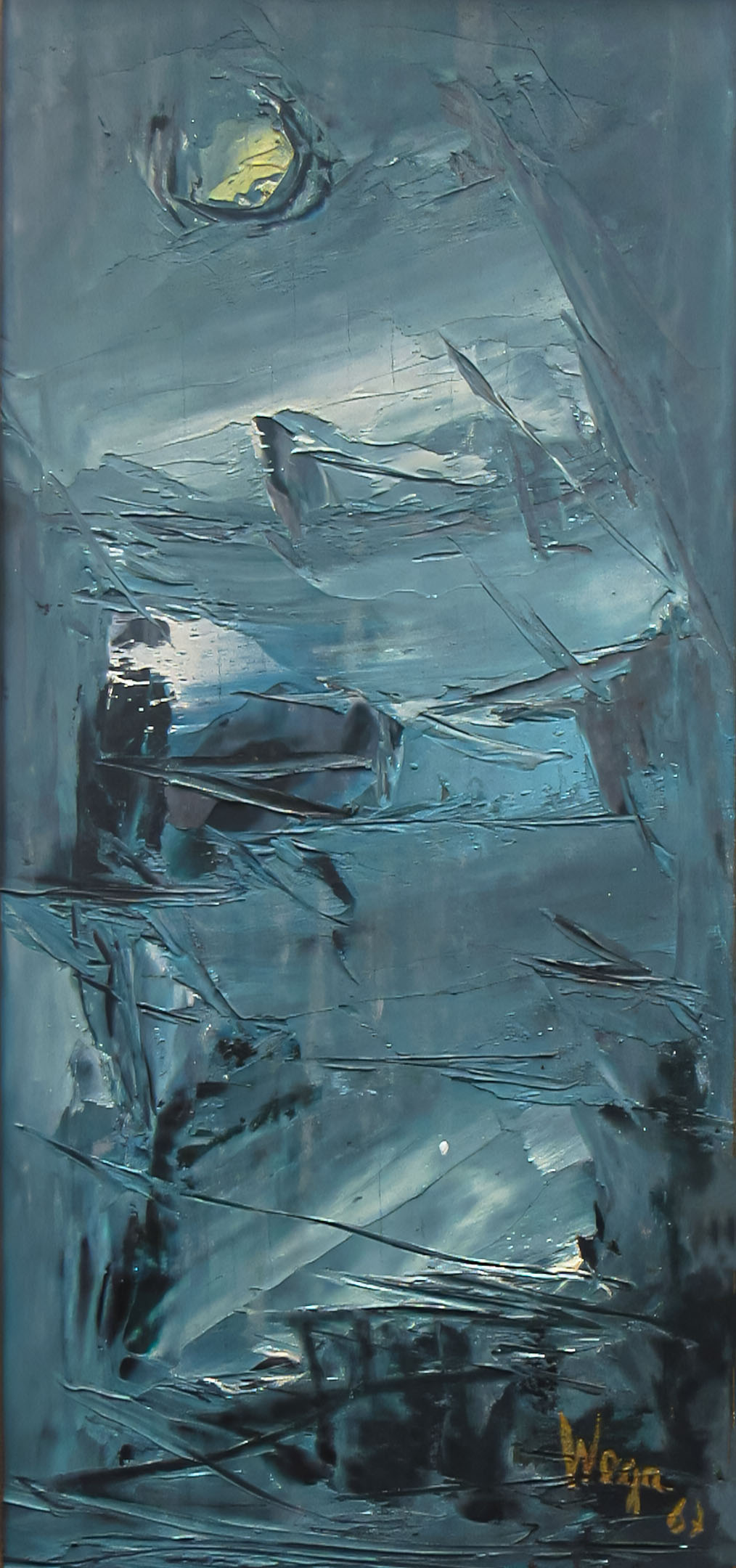 Wega Nery óleo sobre madeira 28 x 13cm "Sem Titulo" ass. CID datada 1967