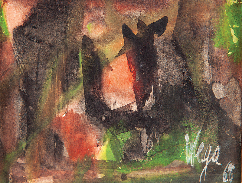 Wega Nery - Abstrato, 1966 - Guache sobre papel, assinado e datado inferior direito. - 17 x 23 cm.