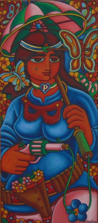 Wellington Virgolino de Souza(Recife, Pernambuco, 1929 - idem, 1988). Pintor, gravador e escultor. Sem educação artística formal,  em 1948, passa a colaborar com o Jornal Pequeno no Recife, com desenhos e charges. Dois anos depois, ingressa, por sugestão do artista e professor Abelardo da Hora (1924-2014), na Sociedade de Arte Moderna do Recife (SAMR). Nesse período desenvolve sua obra madura, em meio à efervescência artística vivida em Recife, na qual a SAMR é decisiva para a consolidação da arte moderna em Pernambuco. Em 1952, entra para o Ateliê Coletivo, curso livre de artes plásticas, idealizado e encabeçado por Abelardo da Hora, em seu mandato na presidência da SAMR. Como integrante do grupo, faz parte de uma nova geração de artistas pernambucanos, ao lado de artistas como Gilvan Samico (1928-2013), Ionaldo Cavalcanti (1933-2002) e José Claudio (1932). Durante sua participação no Ateliê, complementa sua formação com aulas ministradas por da Hora e pelo contato com artistas como Carybé (1911-1997) e Lula Cardoso Ayres (1910-1987). A partir de 1950, participa de edições do Salão do Estado de Pernambuco, na categoria pintura. A essas participações em mostras coletivas somam-se outras, como na 6a e 7a Bienais de São Paulo, em 1961 e 1963. Faz sua primeira exposição individual em 1960, na Galeria do Parque, no Recife. É a primeira de muitas outras em estados como, Pernambuco, Bahia, Rio de Janeiro, São Paulo e Rio Grande do Sul. Em vida, recebe condecorações como a comenda Honra ao Mérito Maçônico (1958), pelo mural A Maçonaria Trabalha. Postumamente é homenageado com o troféu Construtores da Cultura (1995), concedido pelo Conselho Municipal de Cultura de Recife.