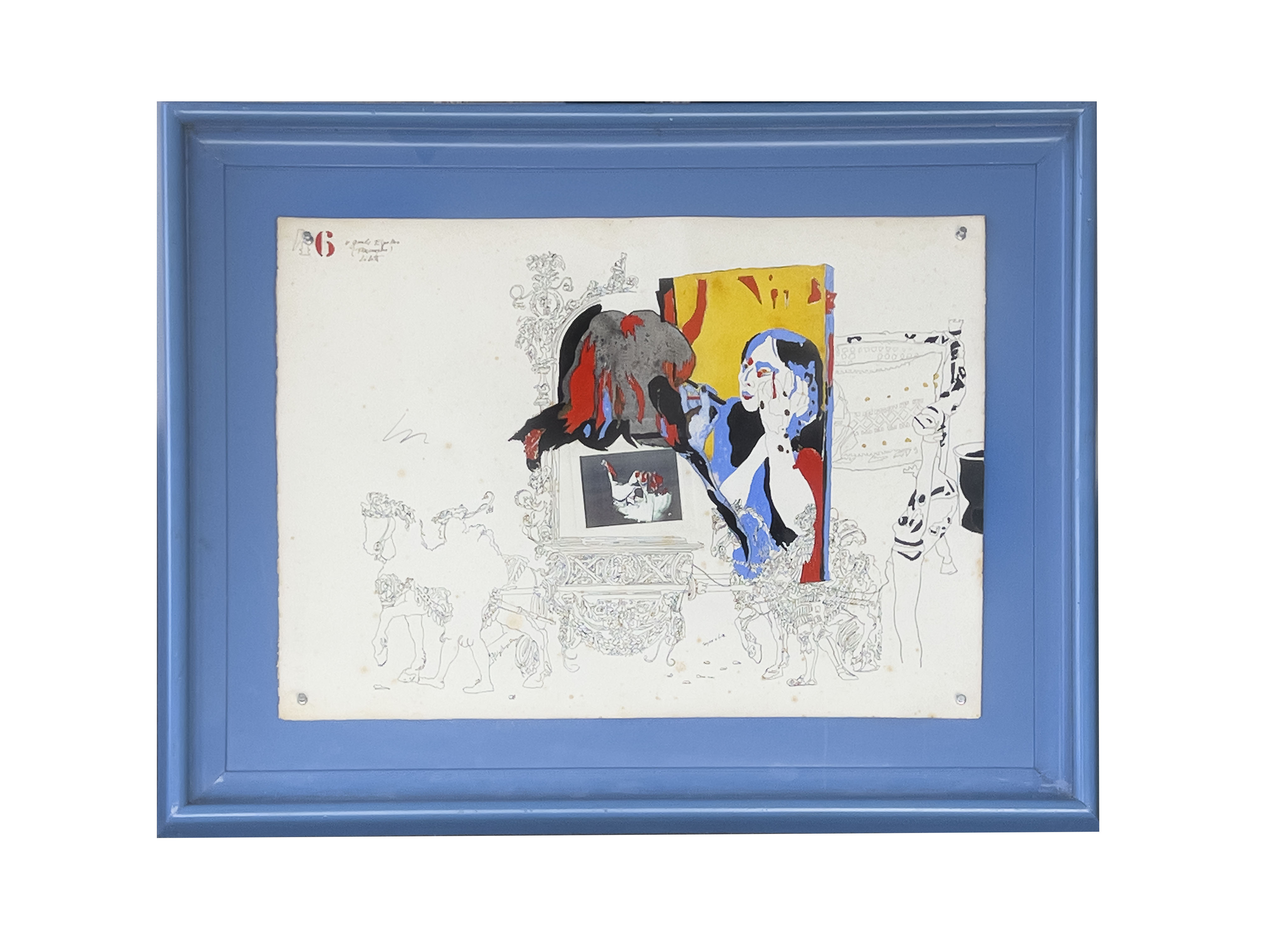 Wesley Duke Lee (1931 - 2010) - O Grande Espelho (Triumpho) Lilith Maquiando-se - nanquim, guache e xerox sobre papel - 51 x 69cm - assinada lado esquerdo ao centro - 1966/86 - Com etiqueta Galeria São Paulo