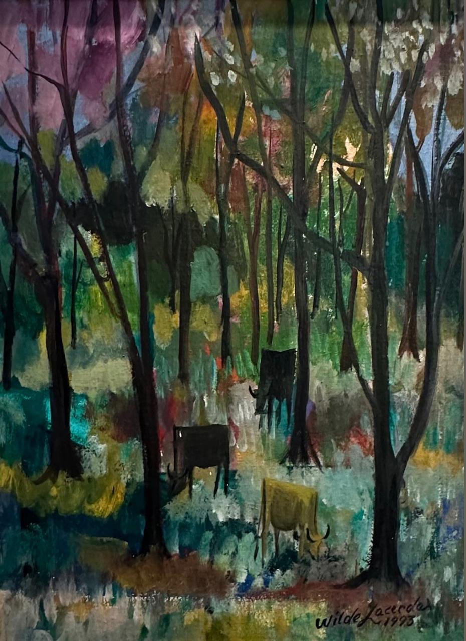 Wilde Damaso Lacerda (Belo Horizonte MG 1929 - idem 1996). Pintor, desenhista, gravador, escultor e professor. Antes de iniciar a carreira artística, trabalha como funileiro na oficina mecânica do irmão. Em 1946, recebe da prefeitura de Belo Horizonte uma bolsa de estudos para a Escola de Belas Artes de Belo Horizonte. Estuda pintura com Alberto da Veiga Guignard (1896-1962) e escultura com Franz Weissmann (1911-2005), tornando-se posteriormente assistente de ambos. Começa a expor em mostras coletivas no início da década de 1950. Atua como presidente da Associação Mineira de Artistas Plásticos - Amap. Em 1967, com a expansão da Escola de Belas Artes da Universidade Federal de Minas Gerais - EBA/UFMG, Lacerda é convidado a exercer atividade docente nesta instituição, tornando-se professor de escultura.