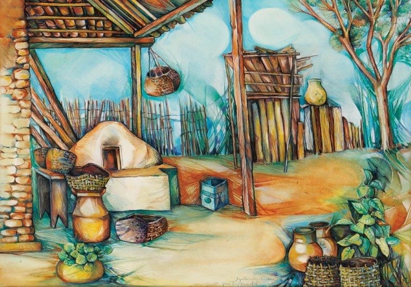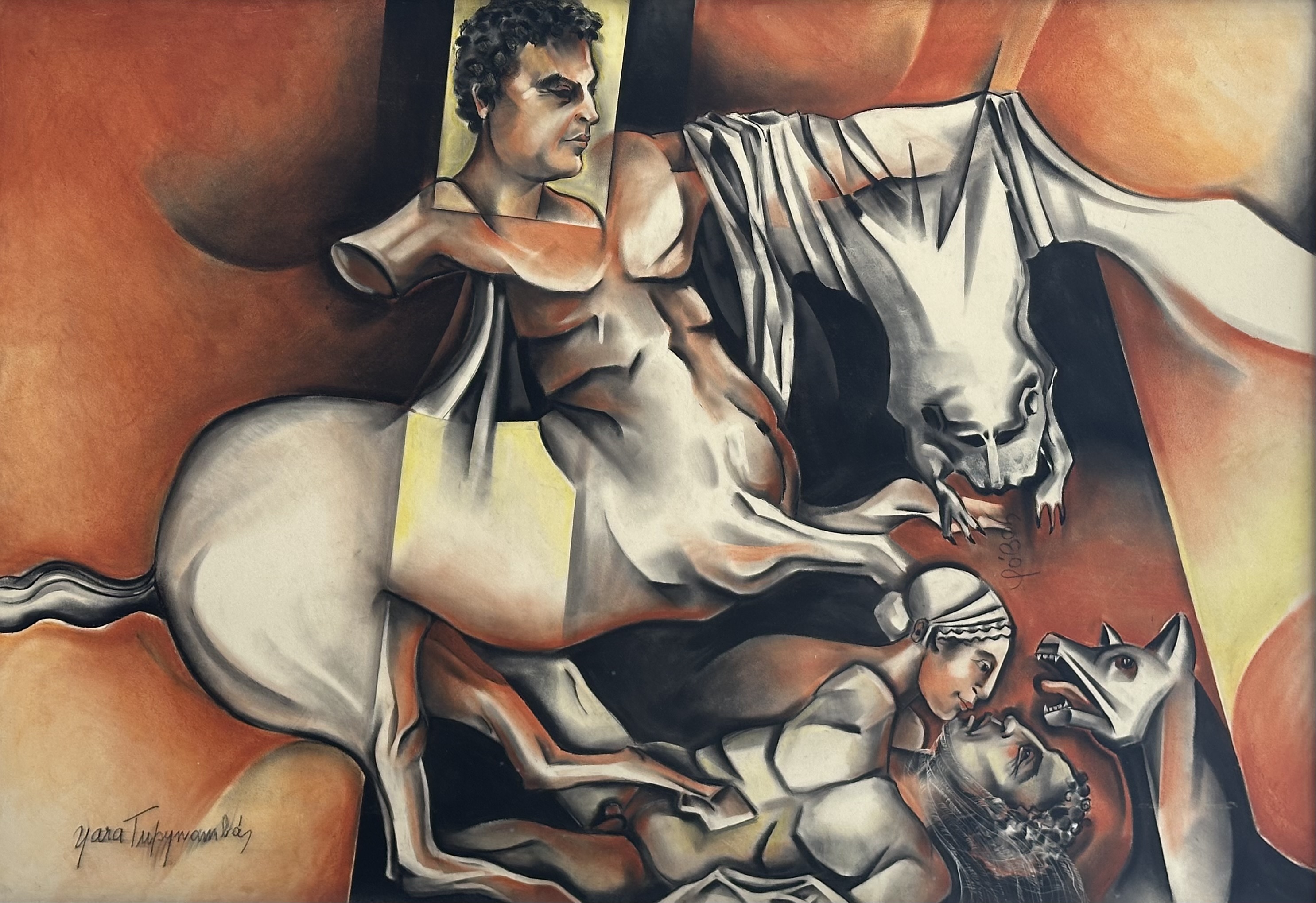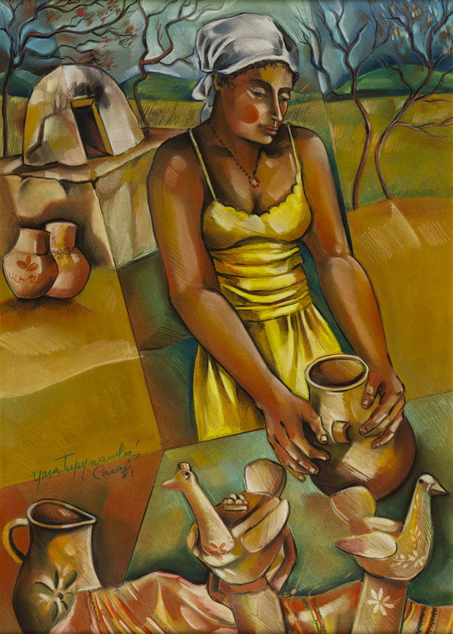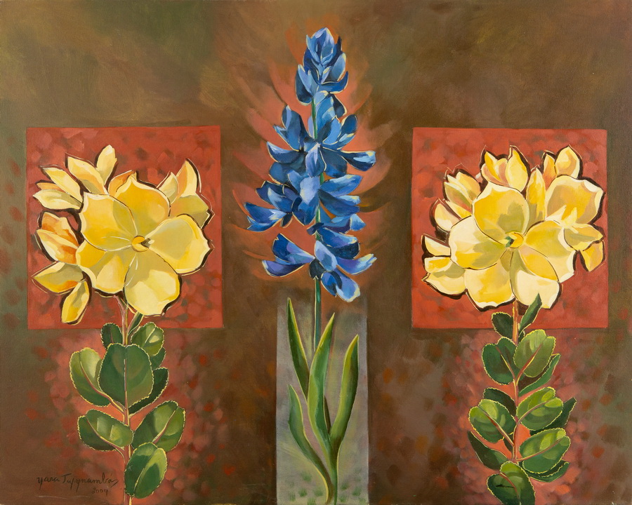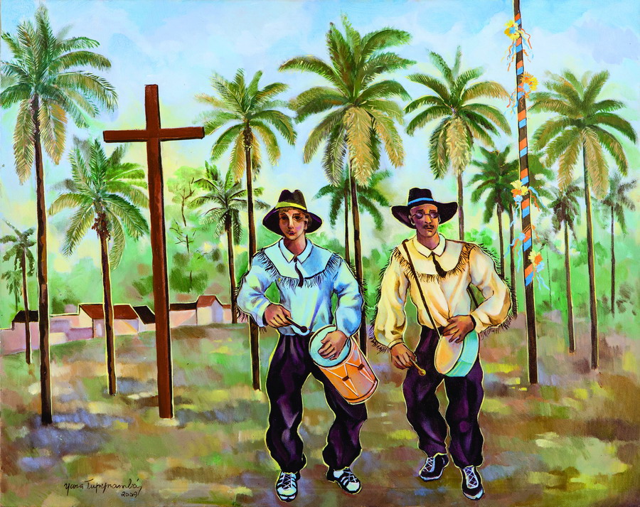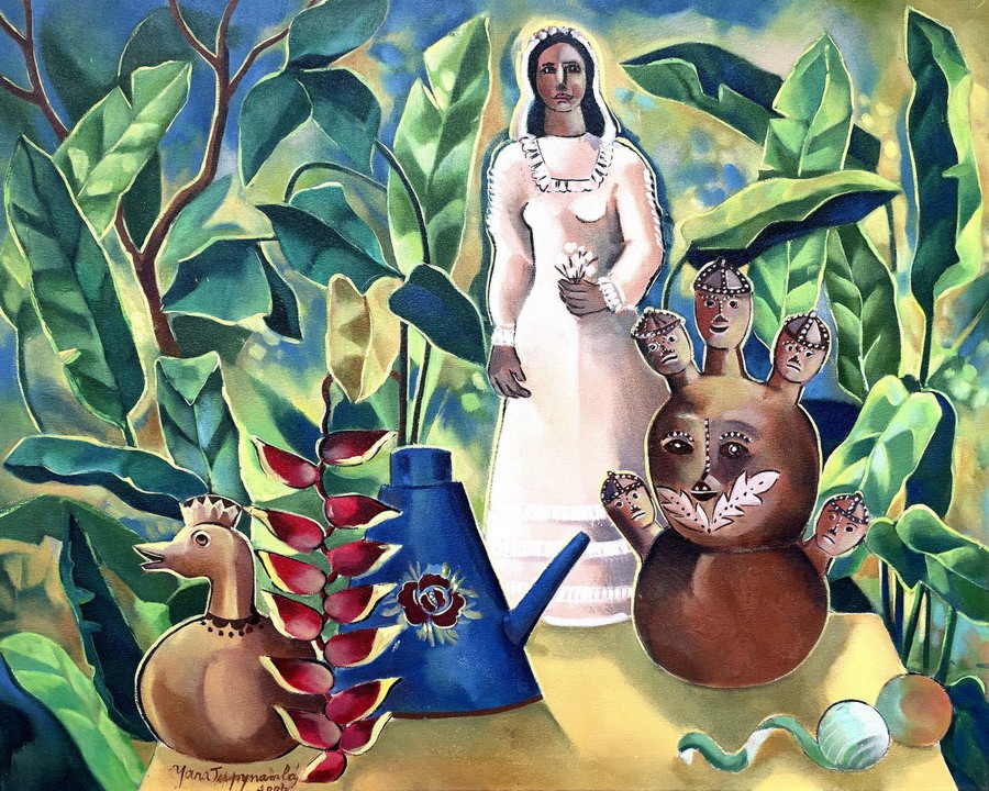 Yara Tupynambá - Nossa Senhora da Conceição com menino Jesus - 60 x 40 cm - Acrílica sobre eucatex - Assinatura meio inferior e Data 2002