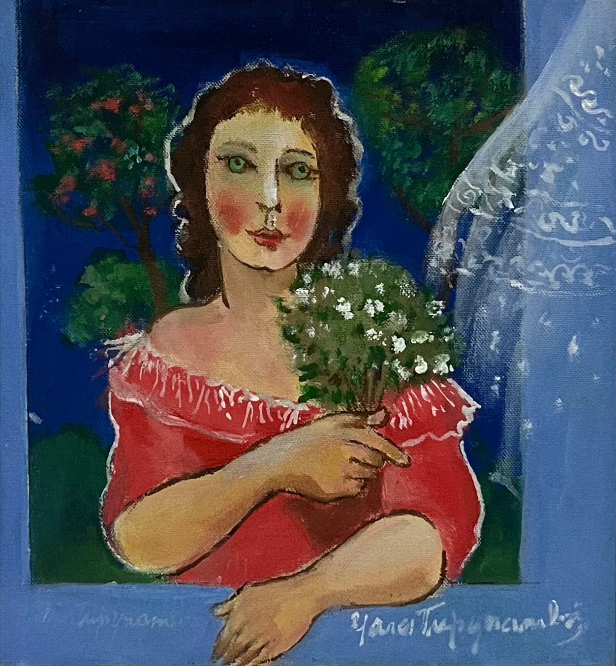 Yara Tupynambá - Moça mineira - 28,5 x 26,5 cm - Acrílica sobre tela - Assinatura canto inferior direito e Data 2019