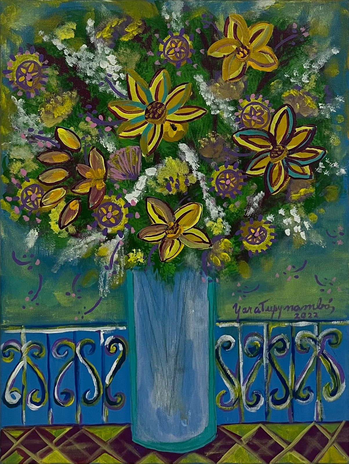 Yara Tupynambá - Flores na janela - 40 x 30 cm - Acrílica sobre tela - Assinatura canto inferior direito e Data 2022