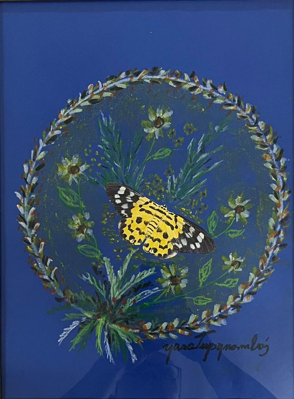 Yara Tupynambá = Flores e borboleta - 40 x 30 cm - Técnica mista sobre cartão - Assinatura canto inferior direito