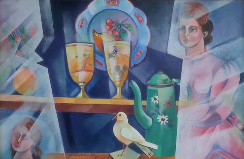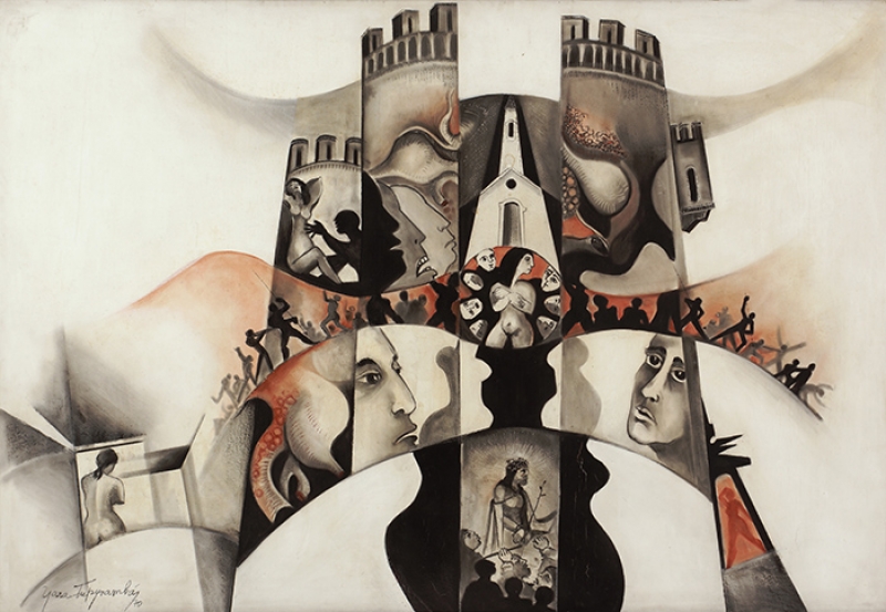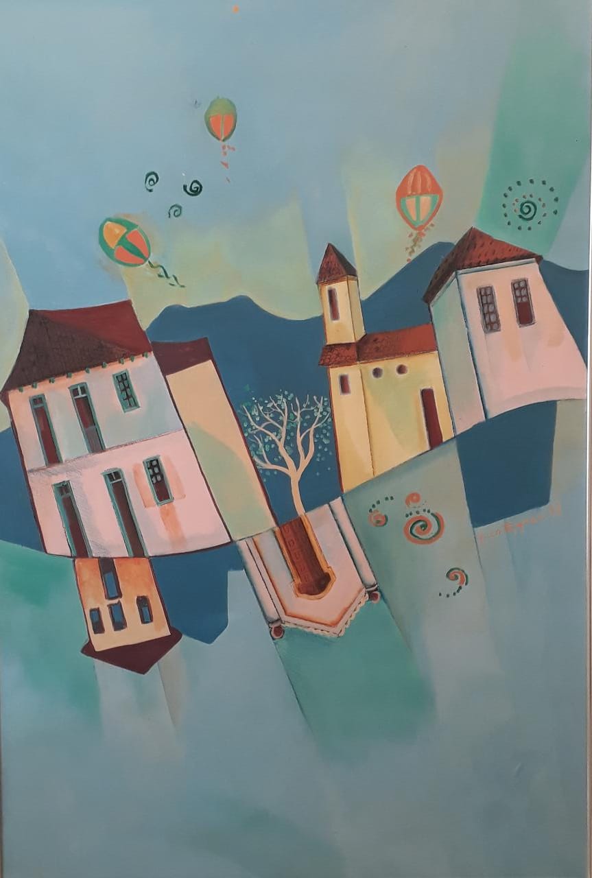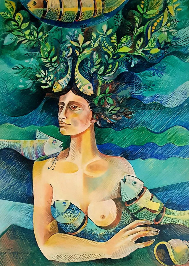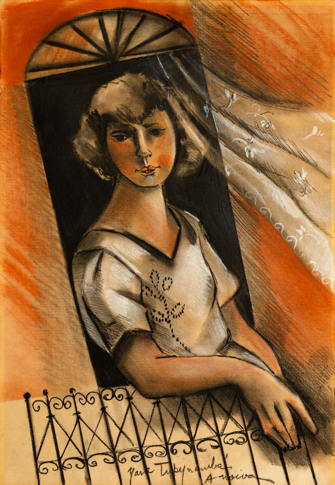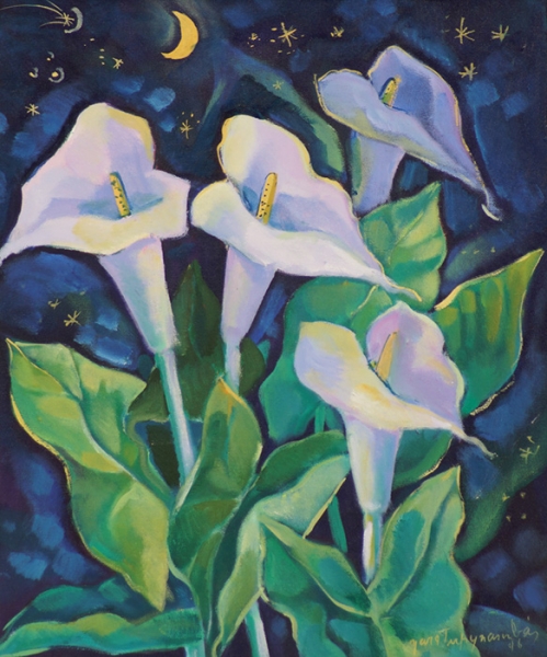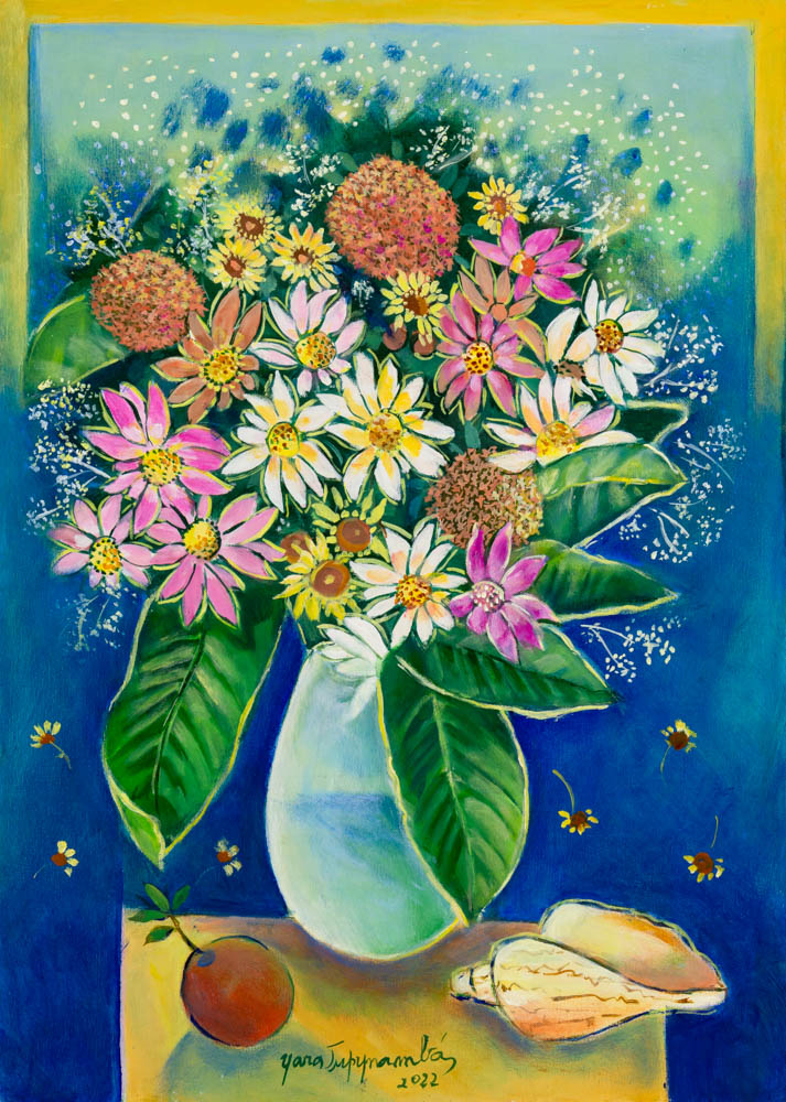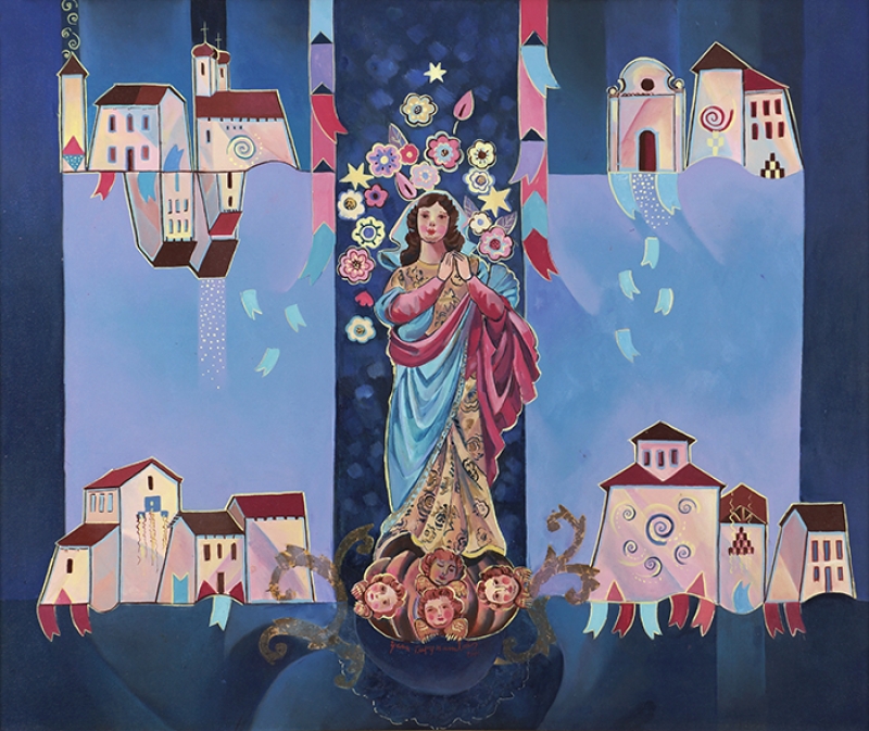 Yara Tupynambá - Nossa Senhora da Conceição com menino Jesus - 60 x 40 cm - Acrílica sobre eucatex - Assinatura meio inferior e Data 2002