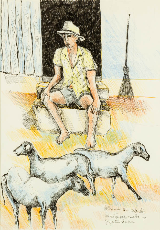 Yara Tupynambá - Menino antigo "Série Poemas de Carlos Drrummond de Andrade" – 61 x 41 cm – Litografia – Tiragam 5/150 – Assinatura canto inferior direito