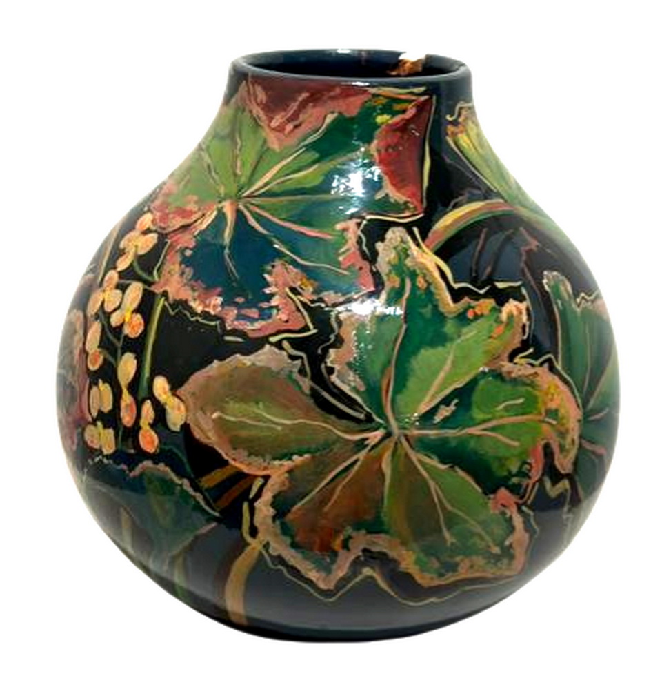 Yara Tupynambá - Begônias Verde e Rosa - 21 x 21 cm - Cerâmica Policromada - Ass. Na Obra e Dat. 1993 - Necessita de pequeno restauro