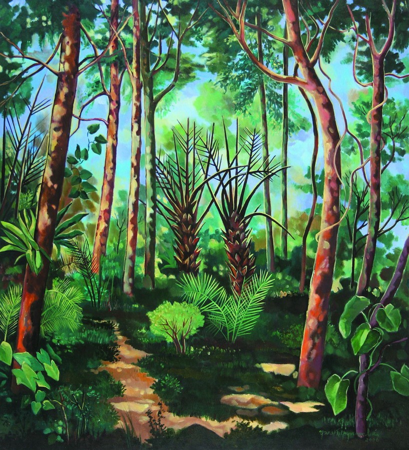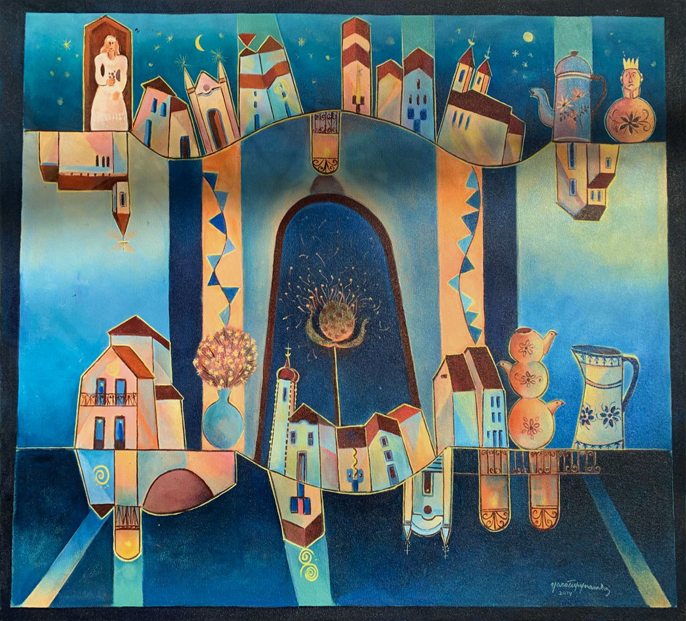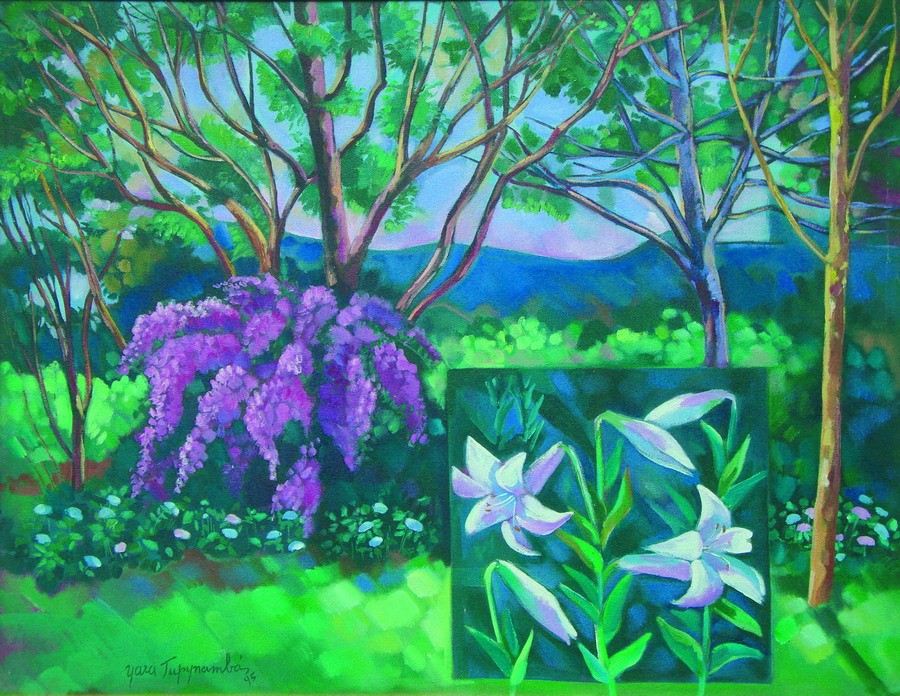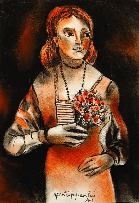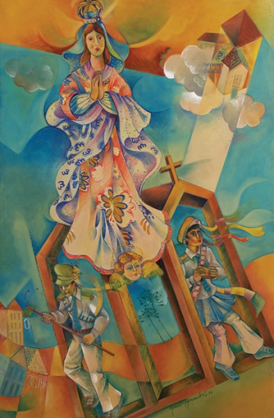 Yara Tupynambá - Nossa Senhora da Conceição com menino Jesus - 60 x 40 cm - Acrílica sobre eucatex - Assinatura meio inferior e Data 2002
