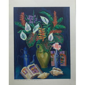 Yara Tupynambá - Vaso de Flores, Homenagem a Bonnard - Gravura Numerada (29/55) - 66 x 48 cm - Ass. CIC - Emoldurada - Doação de Fany Doris Schvartzman