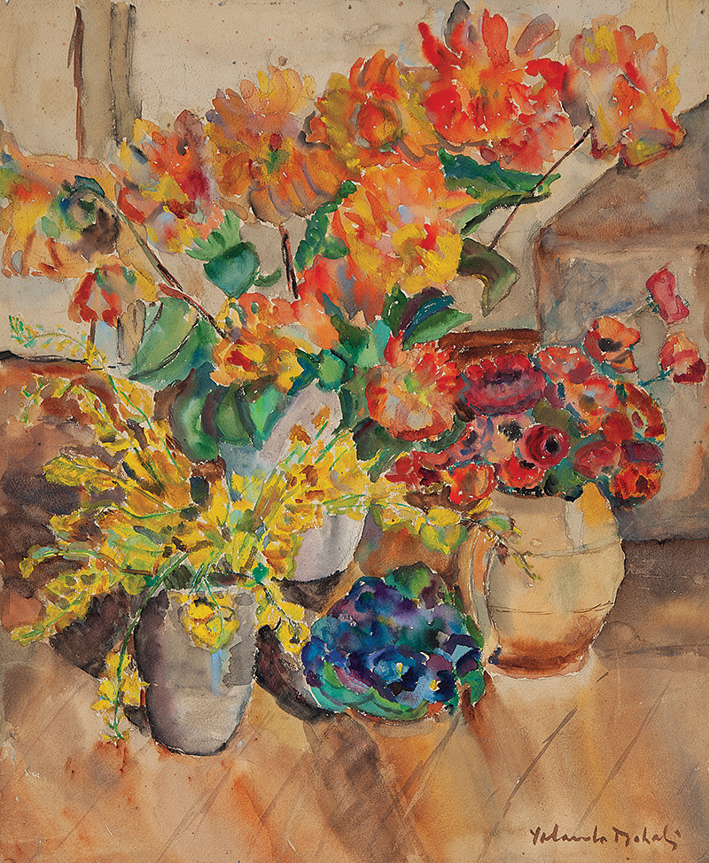 Yolanda Lederer Mohalyi (Kolozsvar, capital da Transilvânia, Hungria [atual Cluj Napoca, Romênia] 1909 - São Paulo SP 1978). Pintora, desenhista. Na Hungria estuda pintura na Escola Livre de Nagygania e, em 1927, ingressa na Real Academia de Belas Artes de Budapeste. Em 1931, vem para o Brasil e fixa-se em São Paulo, onde leciona desenho e pintura. Foram seus alunos, entre outros, Maria Bonomi (1935) e Giselda Leirner (1928). A partir de 1935, começa a freqüentar o ateliê de Lasar Segall (1891 - 1957), com quem identifica-se. Por volta de 1937, integra o Grupo 7, ao lado de Victor Brecheret (1894 - 1955), Antonio Gomide (1895 - 1967) e Elisabeth Nobiling (1902 - 1975), entre outros. Sua primeira exposição individual ocorre em 1945 no Instituto de Arquitetos do Brasil - IAB/SP. Em 1951 realiza suas primeiras xilogravuras, com Hansen Bahia (1915 - 1978). Em 1958, recebe o Prêmio Leirner de Arte Contemporânea. Entre as décadas de 1950 e 1960, executa em São Paulo vitrais para a Fundação Armando Álvares Penteado - Faap e murais para as igrejas Cristo Operário e São Domingos, além de mosaicos para residências particulares. Mais tarde, executa também vitrais para a Capela de São Francisco, em Itatiaia. Entre 1960 e 1962, leciona no curso de desenho e plástica da Faap. É também nesse ano que a artista representa o Brasil na 1ª Bienal Americana de Arte, na Argentina, tendo alguns de seus trabalhos escolhidos pelo crítico Sir Herbert Read para uma exposição itinerante nos Estados Unidos. Em 1963, recebe o prêmio de melhor pintor nacional na 7ª Bienal Internacional de São Paulo.