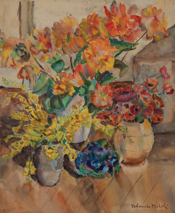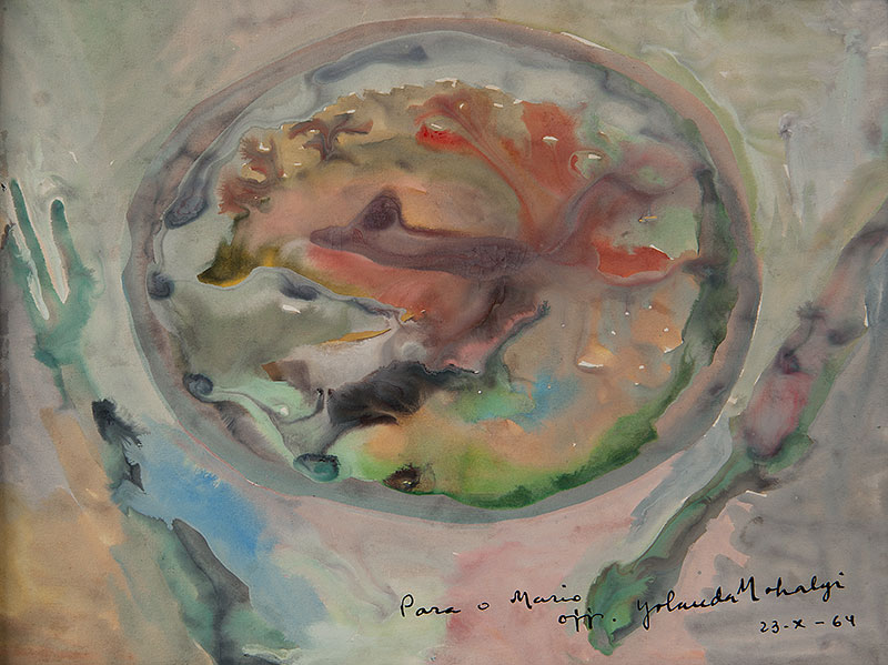 Yolanda Lederer Mohalyi (Kolozsvar, capital da Transilvânia, Hungria [atual Cluj Napoca, Romênia] 1909 - São Paulo SP 1978). Pintora, desenhista. Na Hungria estuda pintura na Escola Livre de Nagygania e, em 1927, ingressa na Real Academia de Belas Artes de Budapeste. Em 1931, vem para o Brasil e fixa-se em São Paulo, onde leciona desenho e pintura. Foram seus alunos, entre outros, Maria Bonomi (1935) e Giselda Leirner (1928). A partir de 1935, começa a freqüentar o ateliê de Lasar Segall (1891 - 1957), com quem identifica-se. Por volta de 1937, integra o Grupo 7, ao lado de Victor Brecheret (1894 - 1955), Antonio Gomide (1895 - 1967) e Elisabeth Nobiling (1902 - 1975), entre outros. Sua primeira exposição individual ocorre em 1945 no Instituto de Arquitetos do Brasil - IAB/SP. Em 1951 realiza suas primeiras xilogravuras, com Hansen Bahia (1915 - 1978). Em 1958, recebe o Prêmio Leirner de Arte Contemporânea. Entre as décadas de 1950 e 1960, executa em São Paulo vitrais para a Fundação Armando Álvares Penteado - Faap e murais para as igrejas Cristo Operário e São Domingos, além de mosaicos para residências particulares. Mais tarde, executa também vitrais para a Capela de São Francisco, em Itatiaia. Entre 1960 e 1962, leciona no curso de desenho e plástica da Faap. É também nesse ano que a artista representa o Brasil na 1ª Bienal Americana de Arte, na Argentina, tendo alguns de seus trabalhos escolhidos pelo crítico Sir Herbert Read para uma exposição itinerante nos Estados Unidos. Em 1963, recebe o prêmio de melhor pintor nacional na 7ª Bienal Internacional de São Paulo.