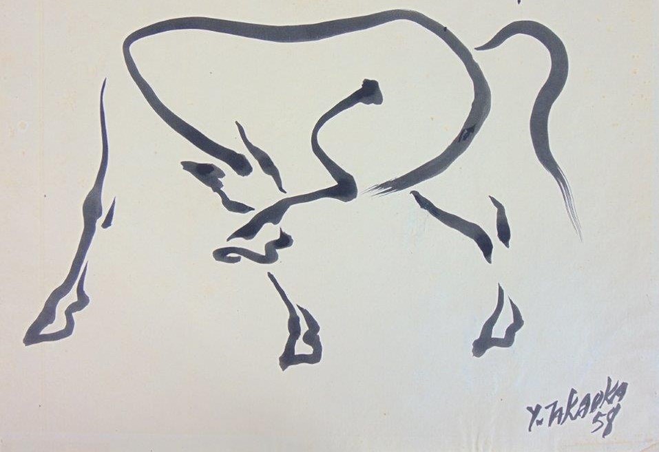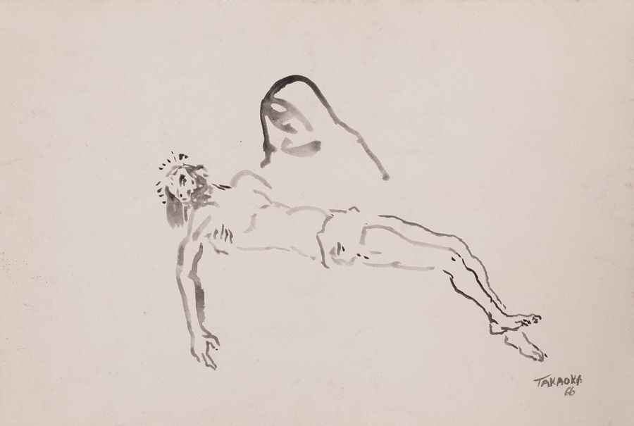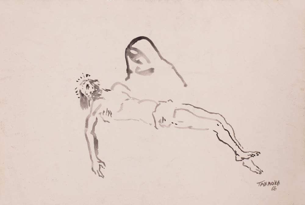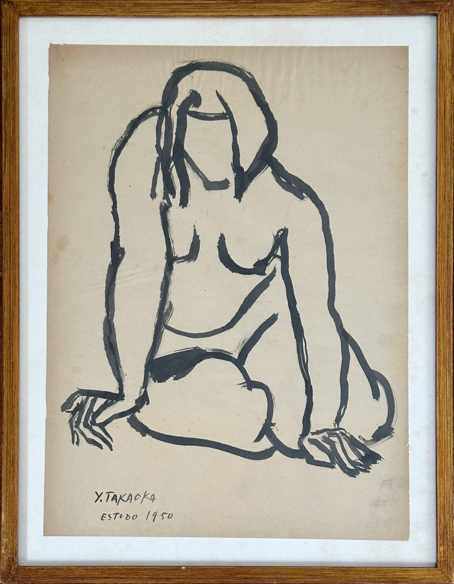 Y. TAKAOKA, Nu feminino - desenho nanquim - 45x33 cm - 1950 - Ass. Inf. Esq.