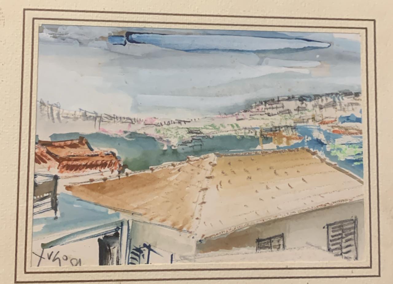 Yugo Mabe - Paisagem - Aquarela - 10x14 - 1981 - Assinada