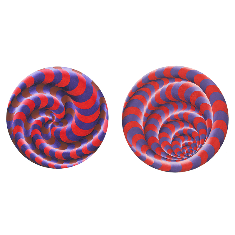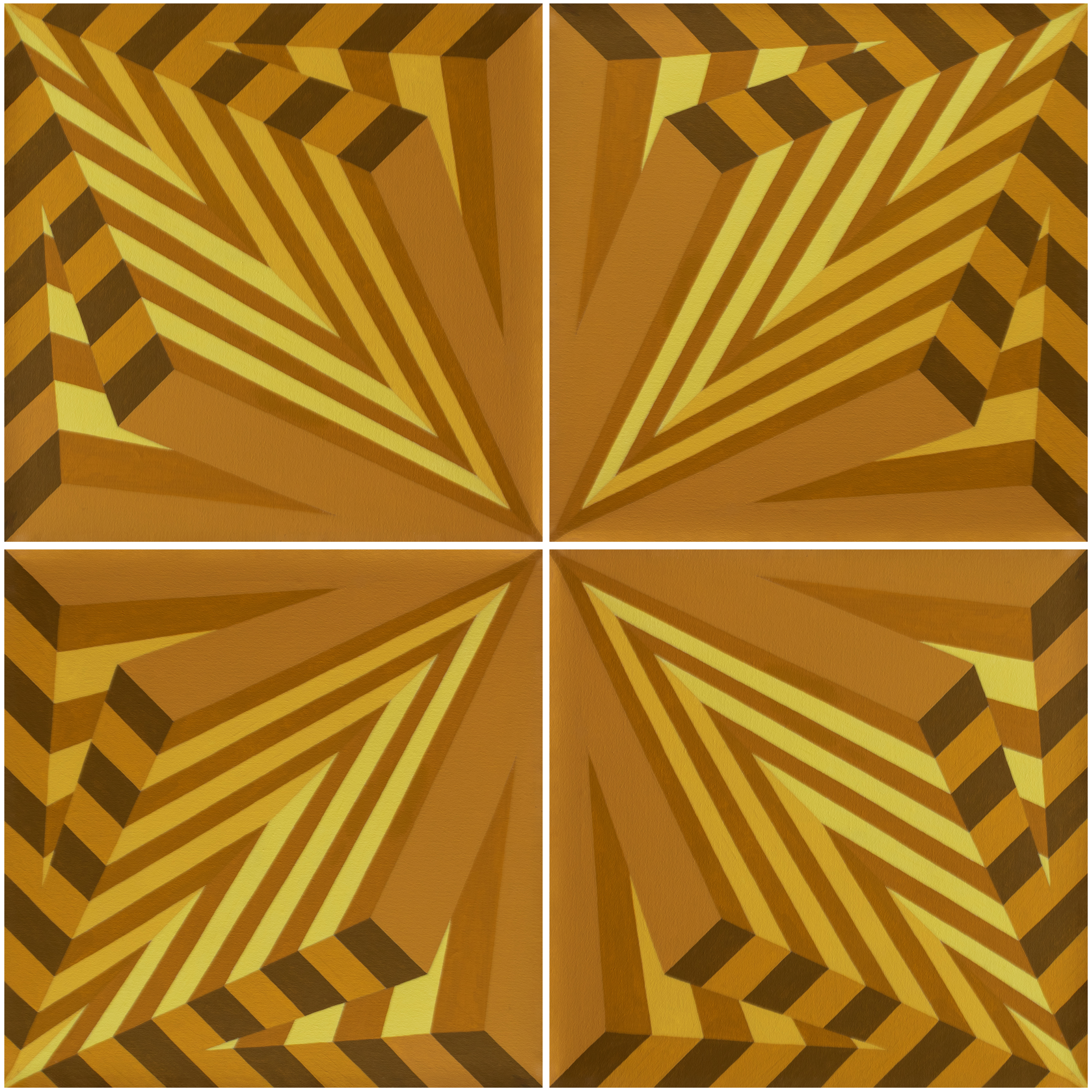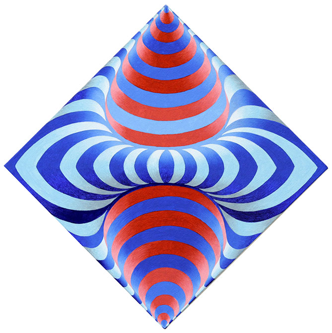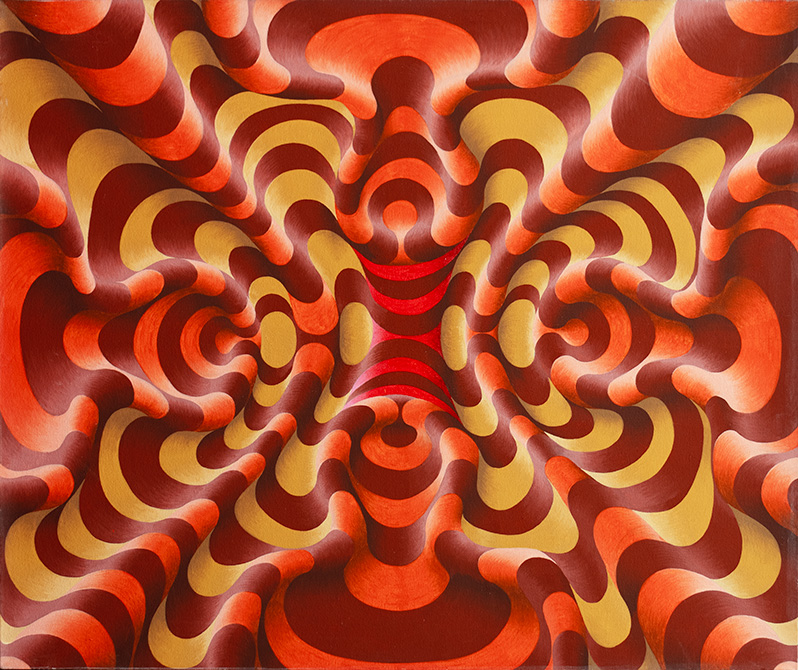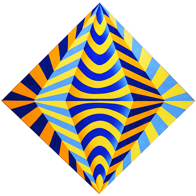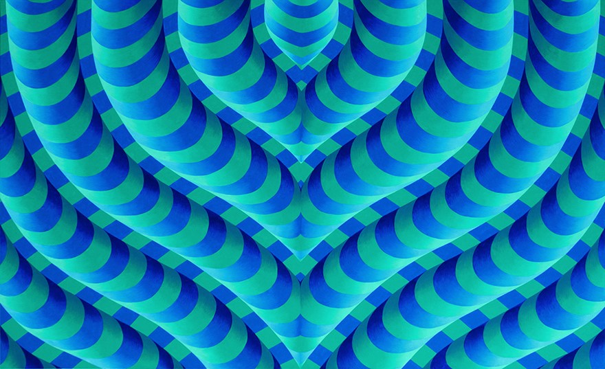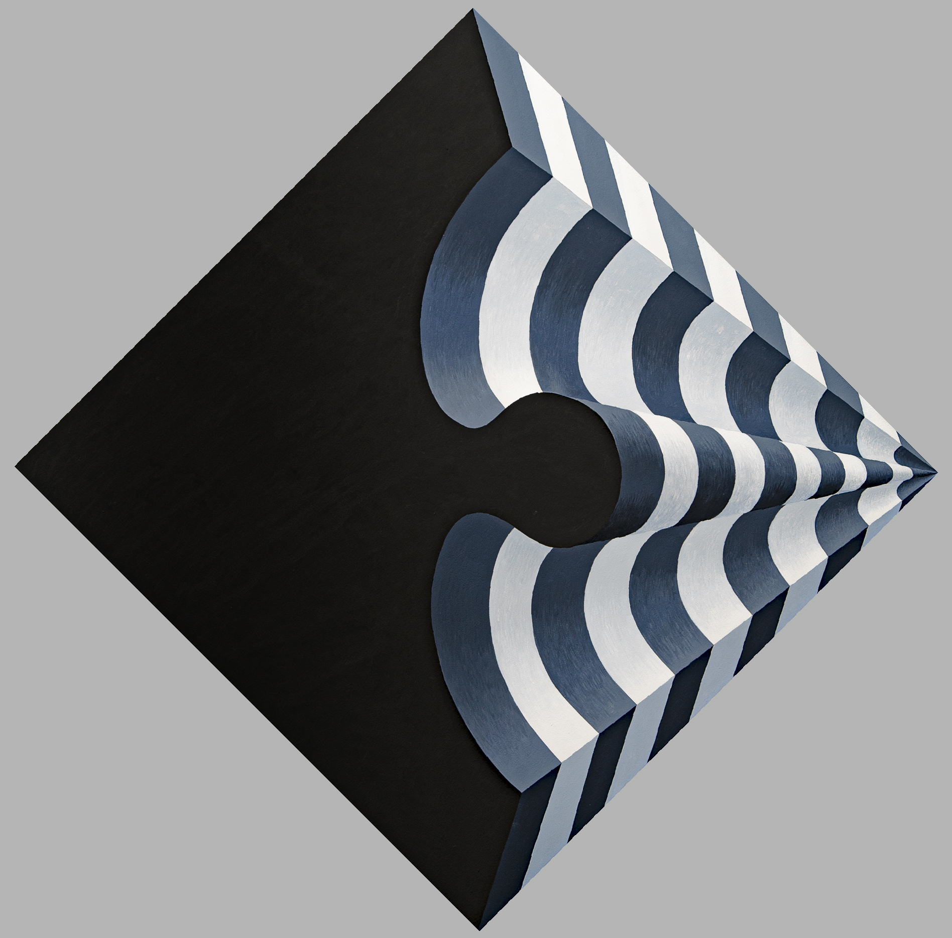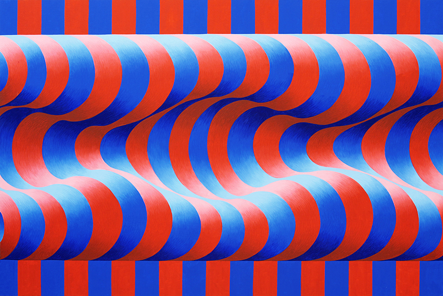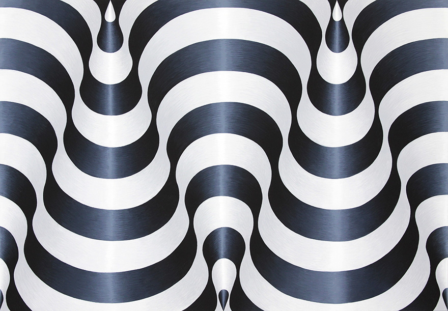 Meu processo de trabalho envolve uma longa fase de estudo preliminar. O resultado final é determinado nesta fase a partir dos contornos pretos no papel e desenhos das múltiplas possibilidades de representação dos volumes ilusórios. Durante o processo de pintura, a sensação de volume é intensificada por uma intensificação de luz e sombra, revelando uma superfície orgânica ou geométrica, côncava ou convexa.
