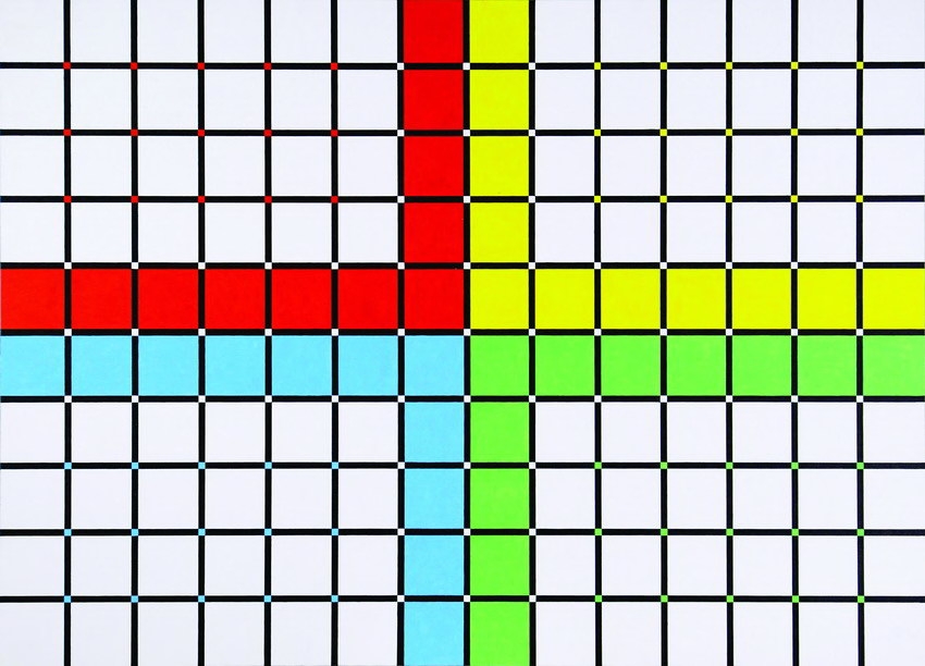 Yves Serpa  - Geometria tropical - 62 x 62 cm - Óleo sobre tela - Assinatura verso e Data 2011