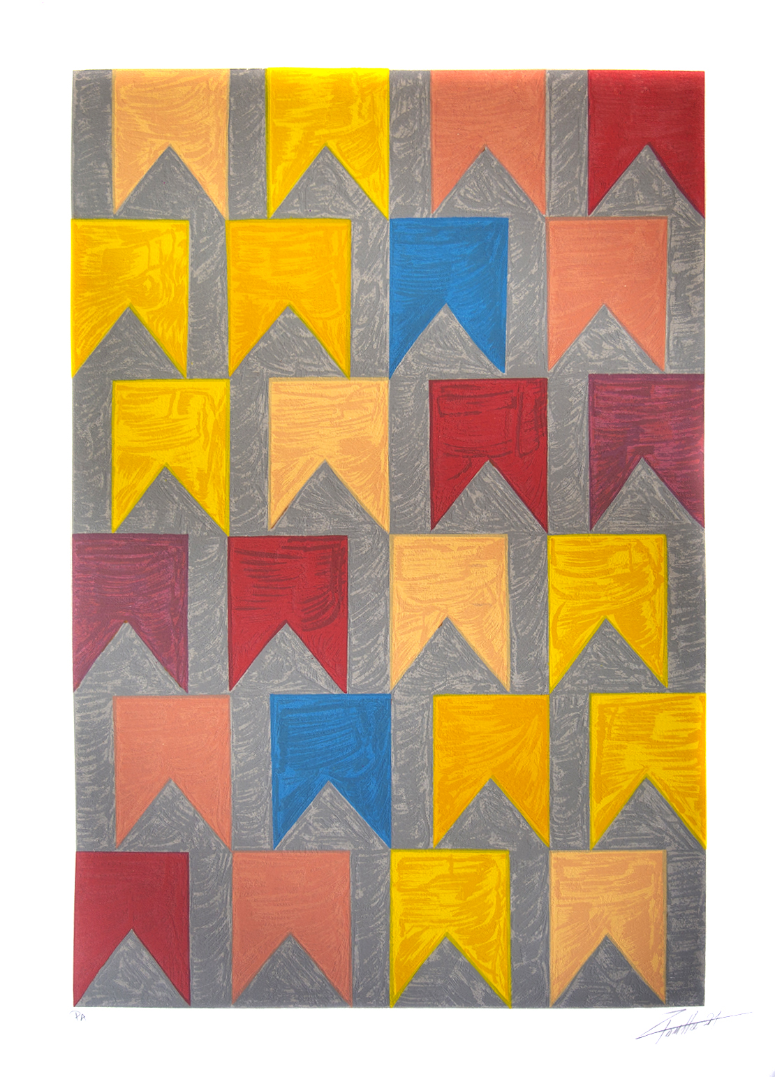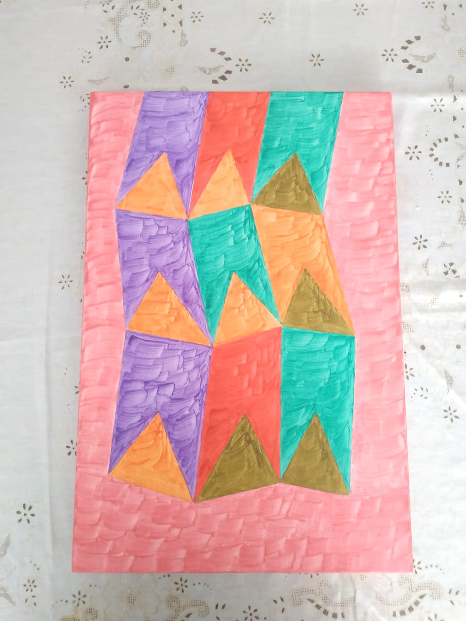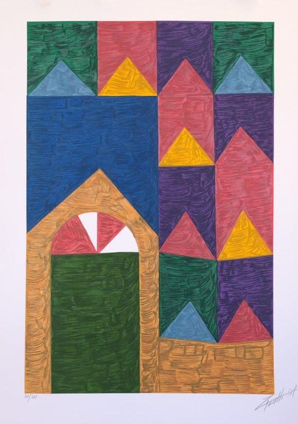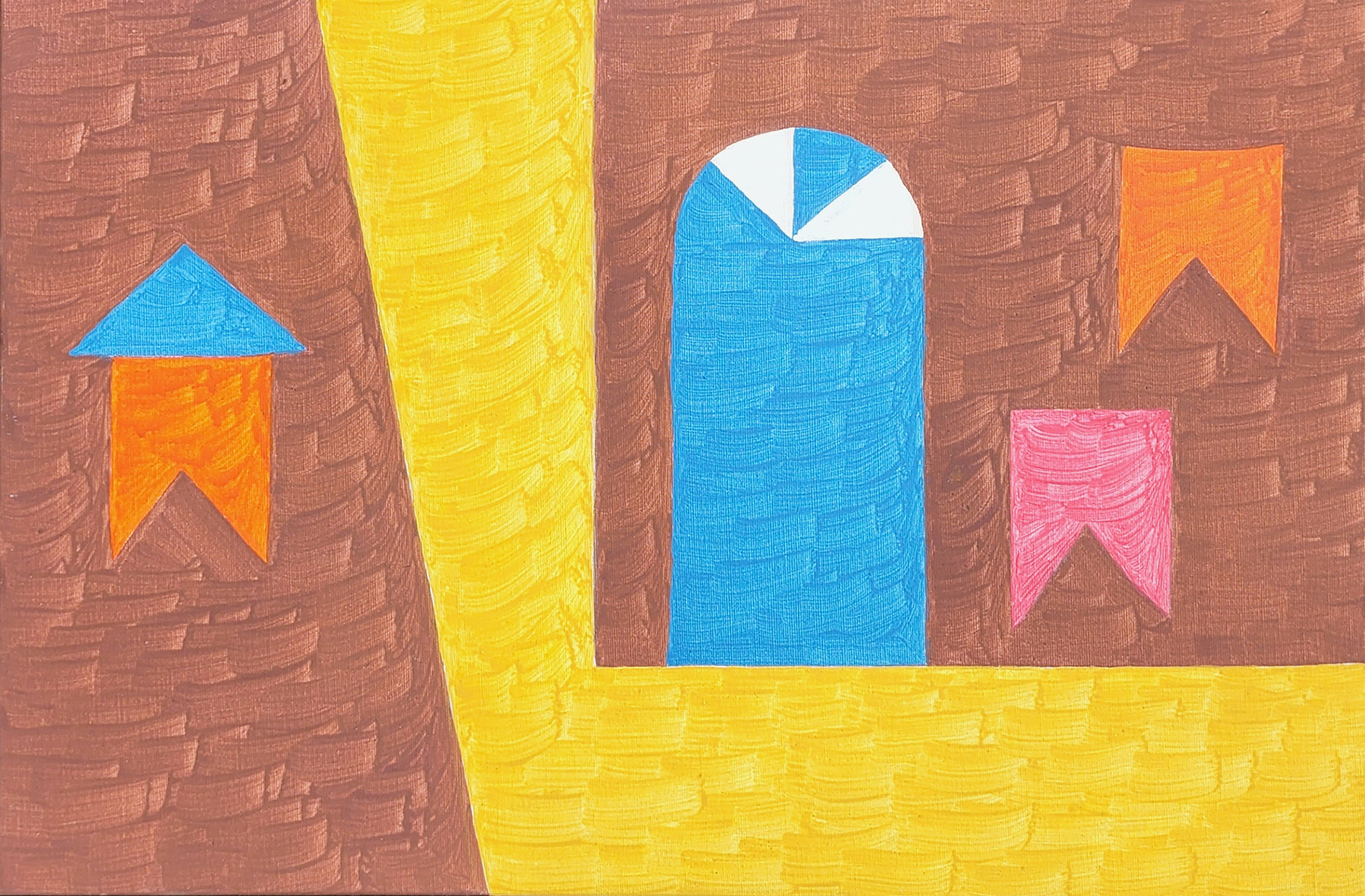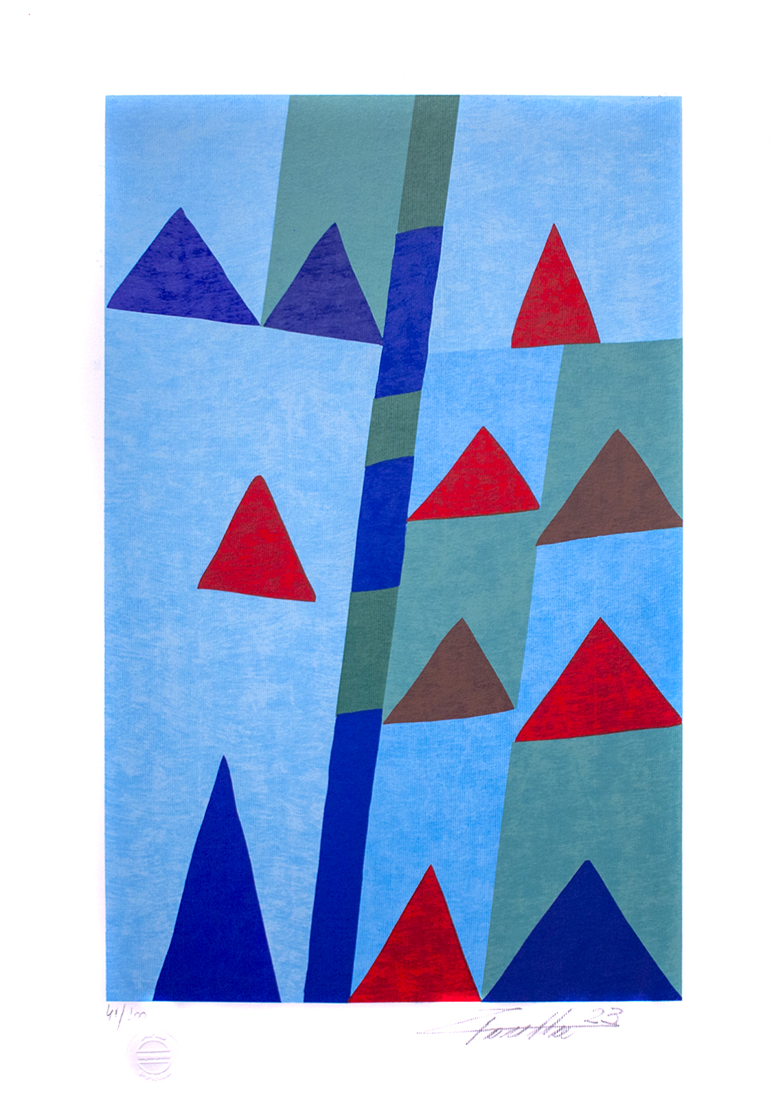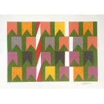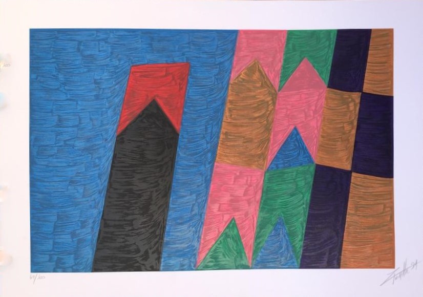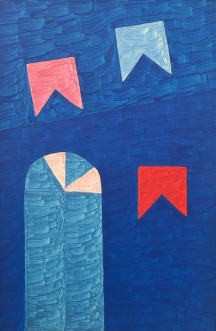 Sua obra atrai primeiro pelas cores e formas, depois para a sensação visual de que a pintura desloca-se do fundo.