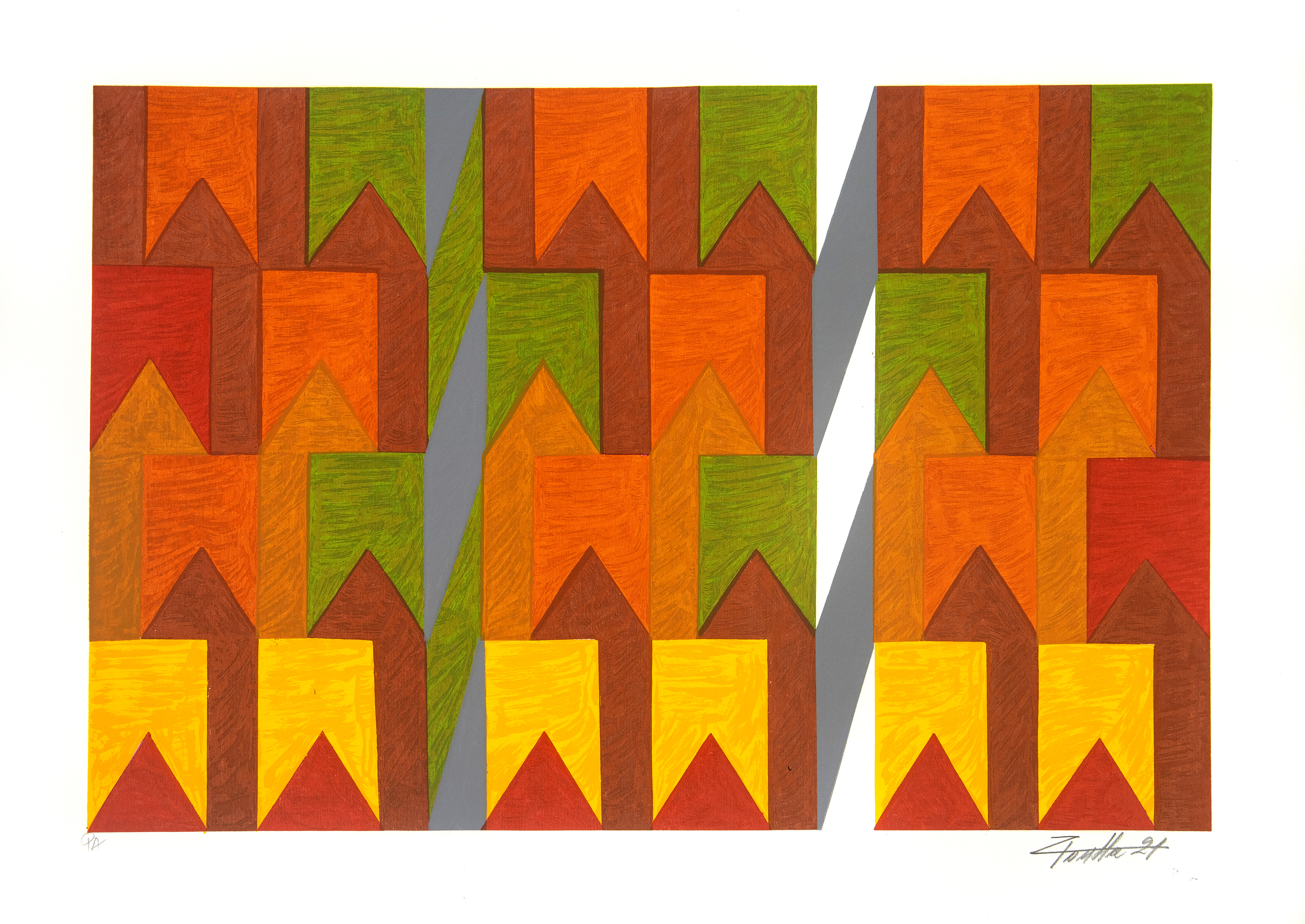 Planos, transparência, volumes e formas geométricas, combinadas entre si, resultam numa obra que transborda movimentos e múltiplas leituras.