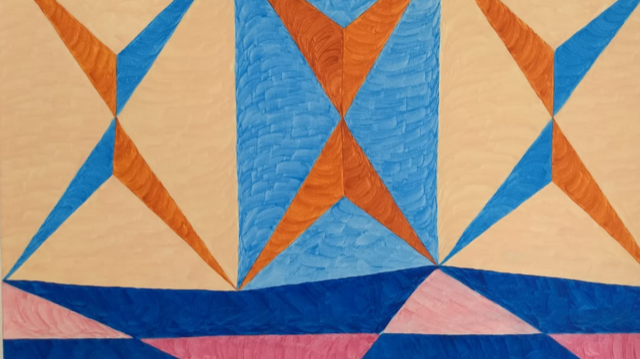 Sua obra atrai primeiro pelas cores e formas, depois para a sensação visual de que a pintura desloca-se do fundo.