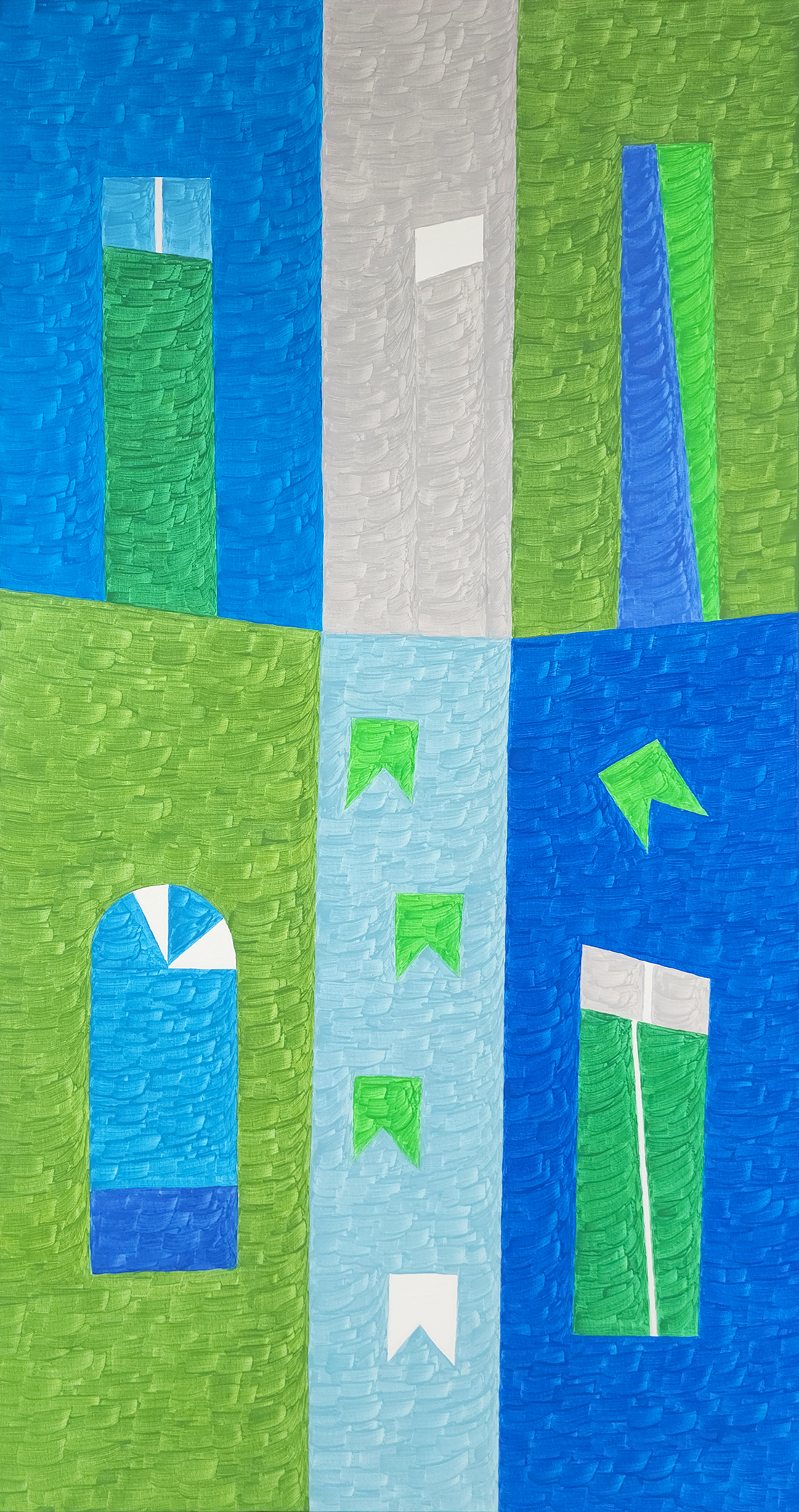 Planos, transparência, volumes e formas geométricas, combinadas entre si, resultam numa obra que transborda movimentos e múltiplas leituras.