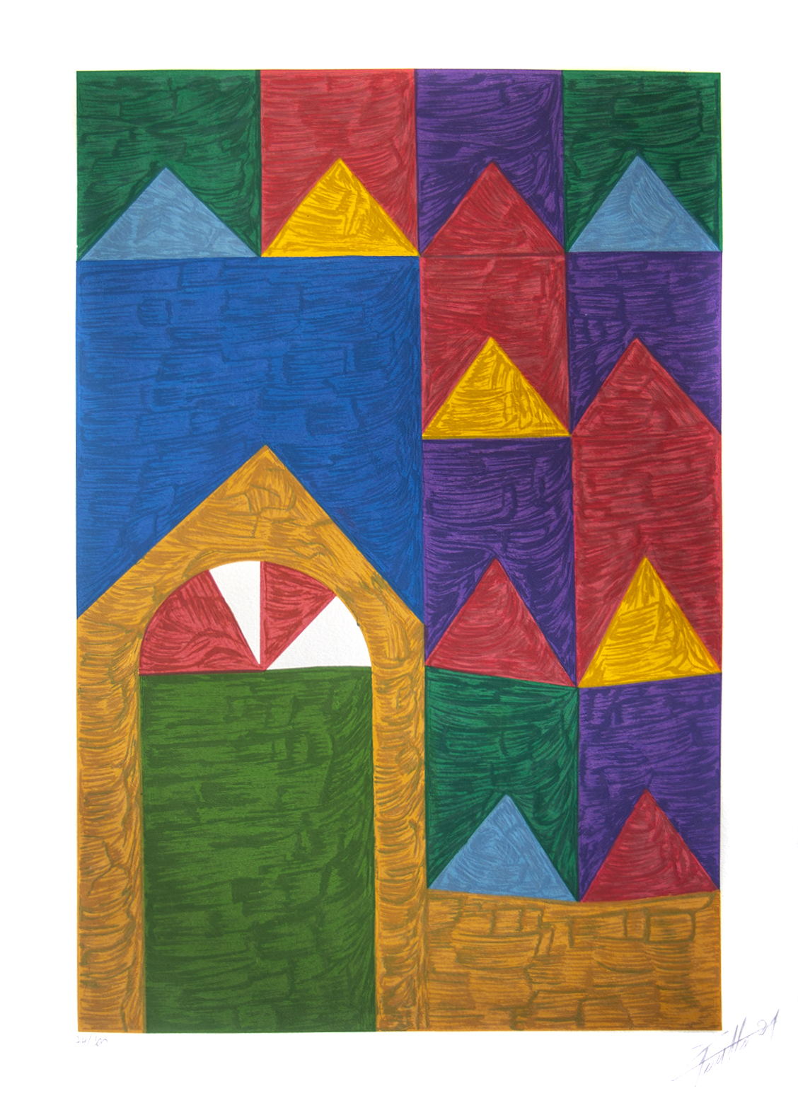 Com relação às cores, o artista explora tanto combinações sutis como faz uso de grandes contrastes.