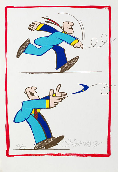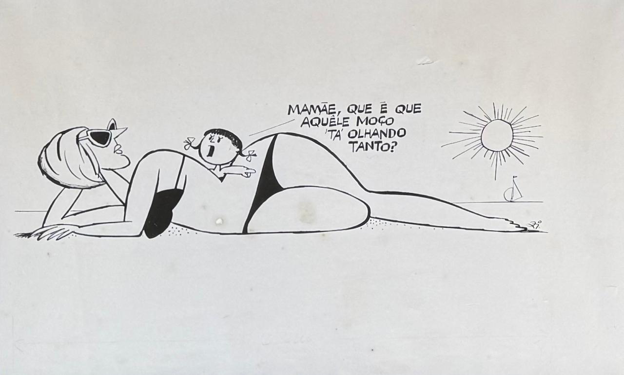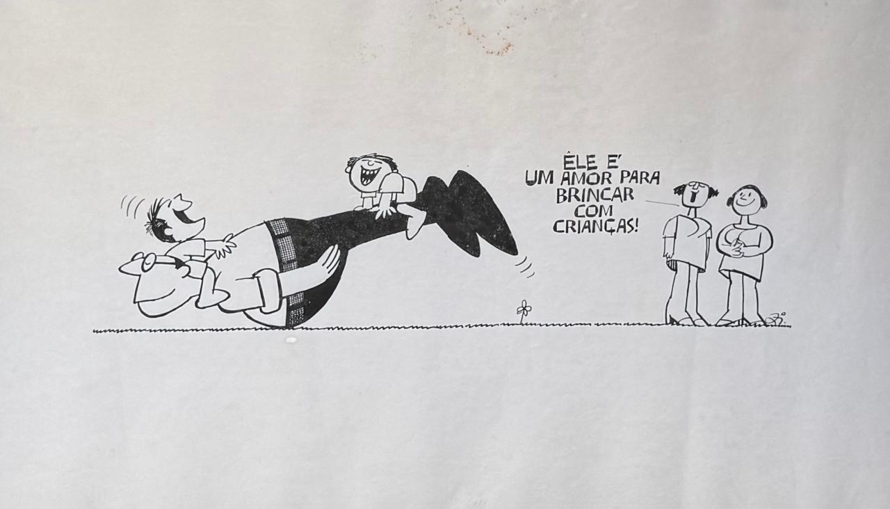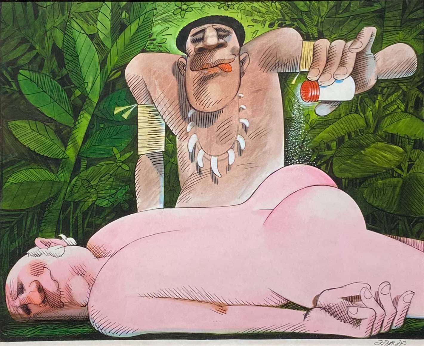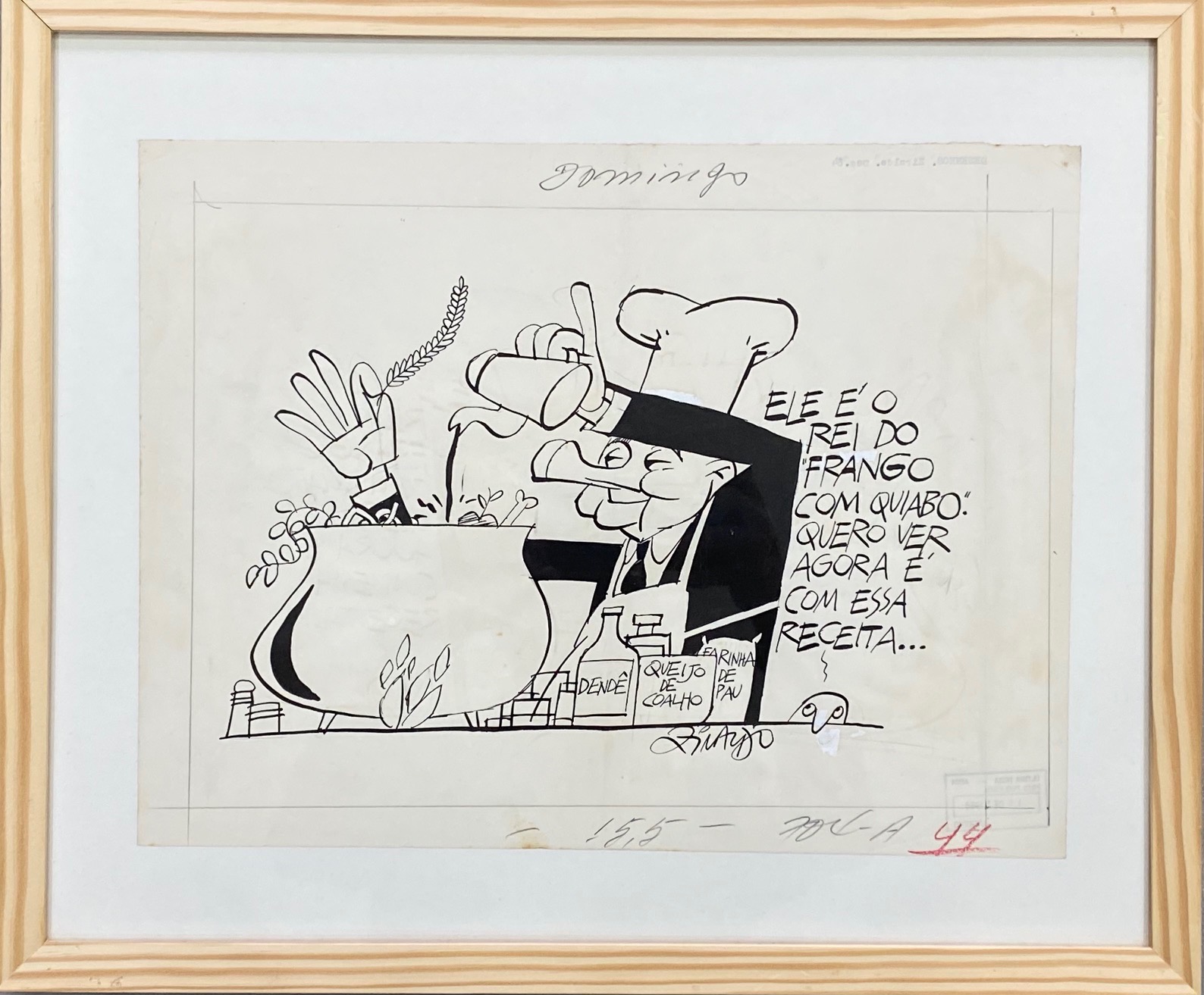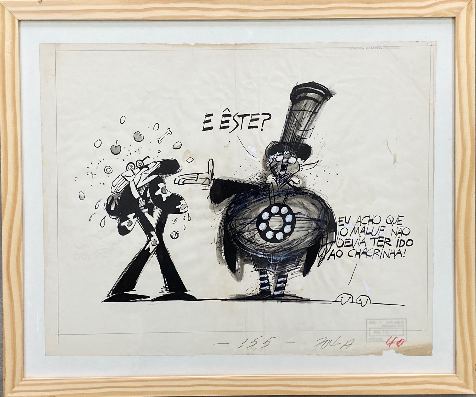 ZIRALDO (Ziraldo Alves Pinto 1932 – 2024) DESENHO ORIGINAL EM BICO DE PENA, AGUADA DE NANQUIM, GUACHE. BATMAN (HOMEM MORCEGO DE CABEÇA PRA BAIXO) CHARGE ASSINADA NBO C.I.D. MEDIDAS: 35 X 39 CM